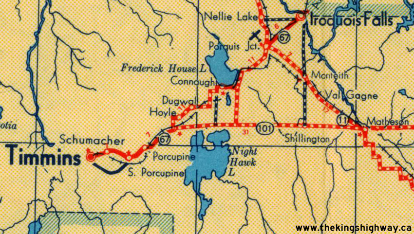 Route of King's Highway 101 (Formerly Highway 67A) between Hoyle and Matheson. See an Enlarged Map Here.