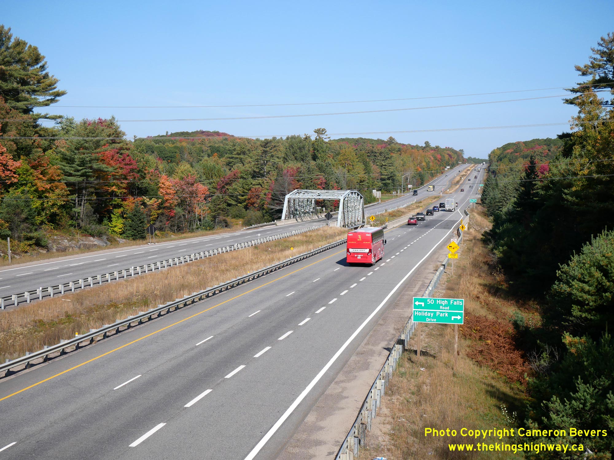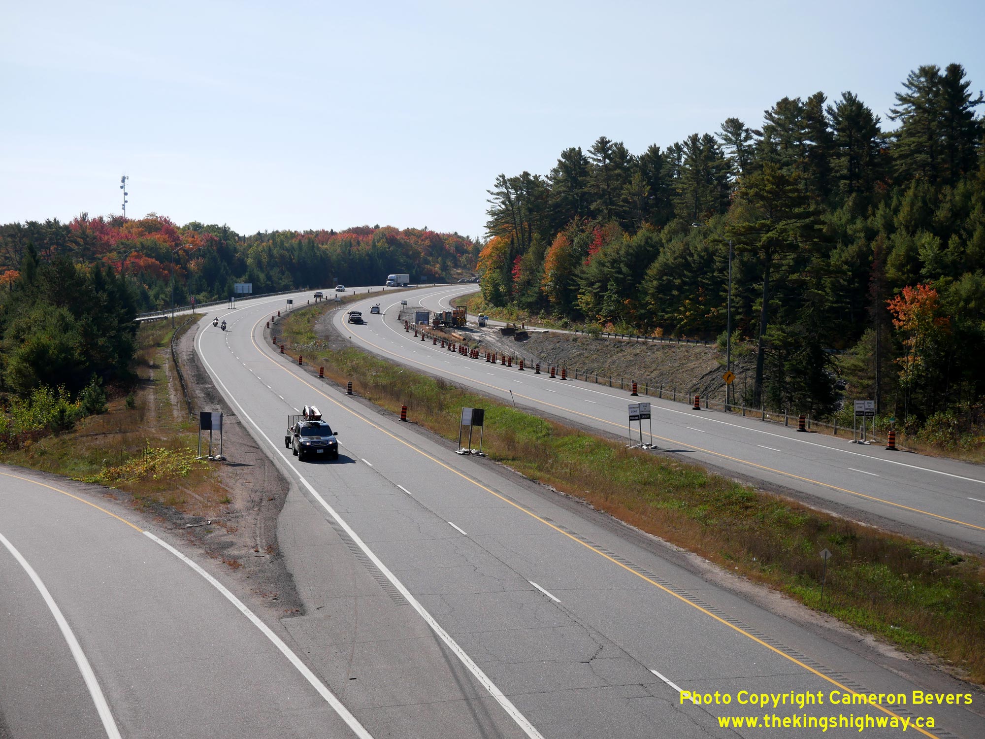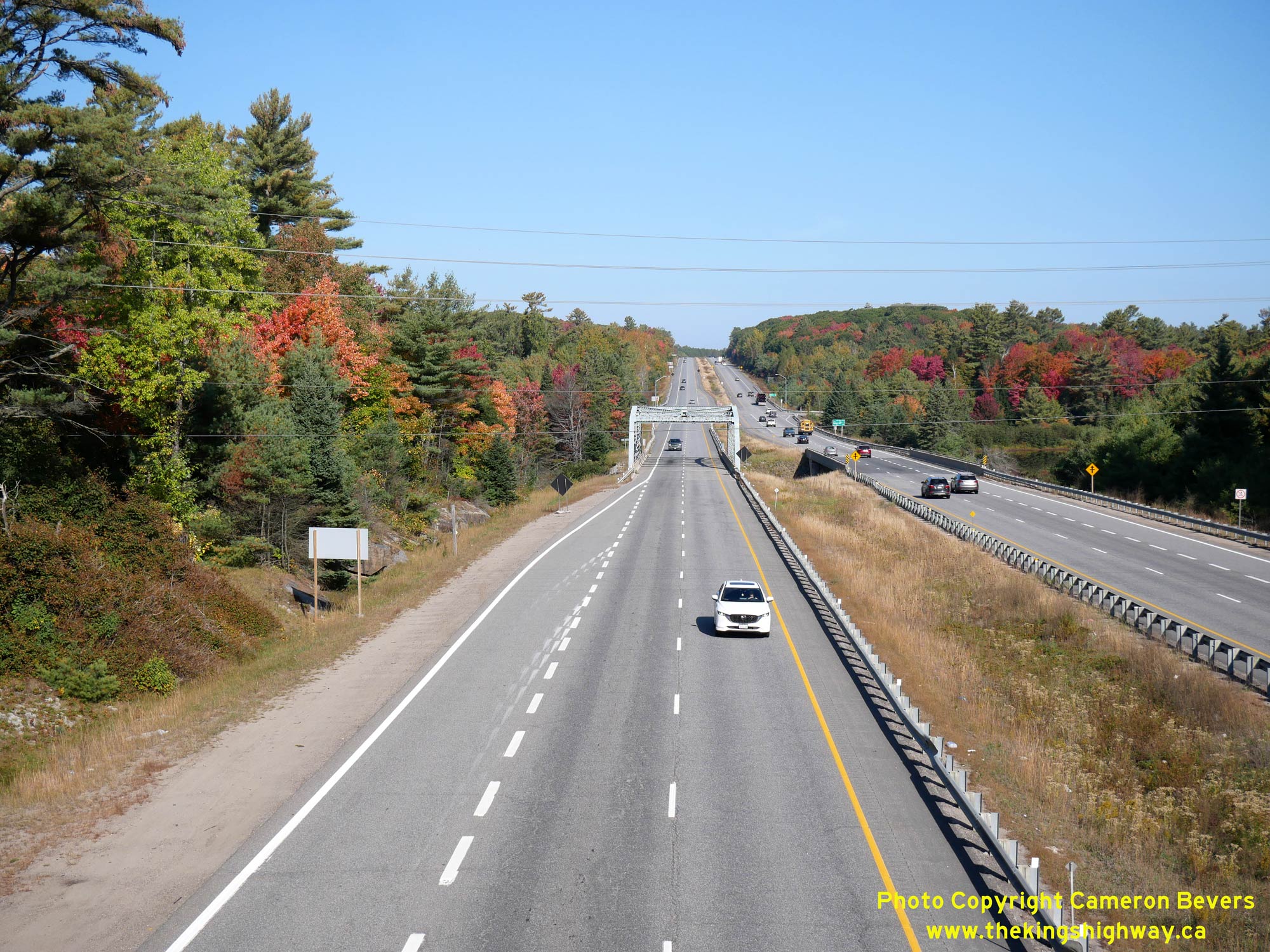 Left - Facing north along Hwy 11 towards the Hwy 117 Interchange in Bracebridge. This was one of two new interchanges built along the Bracebridge Bypass