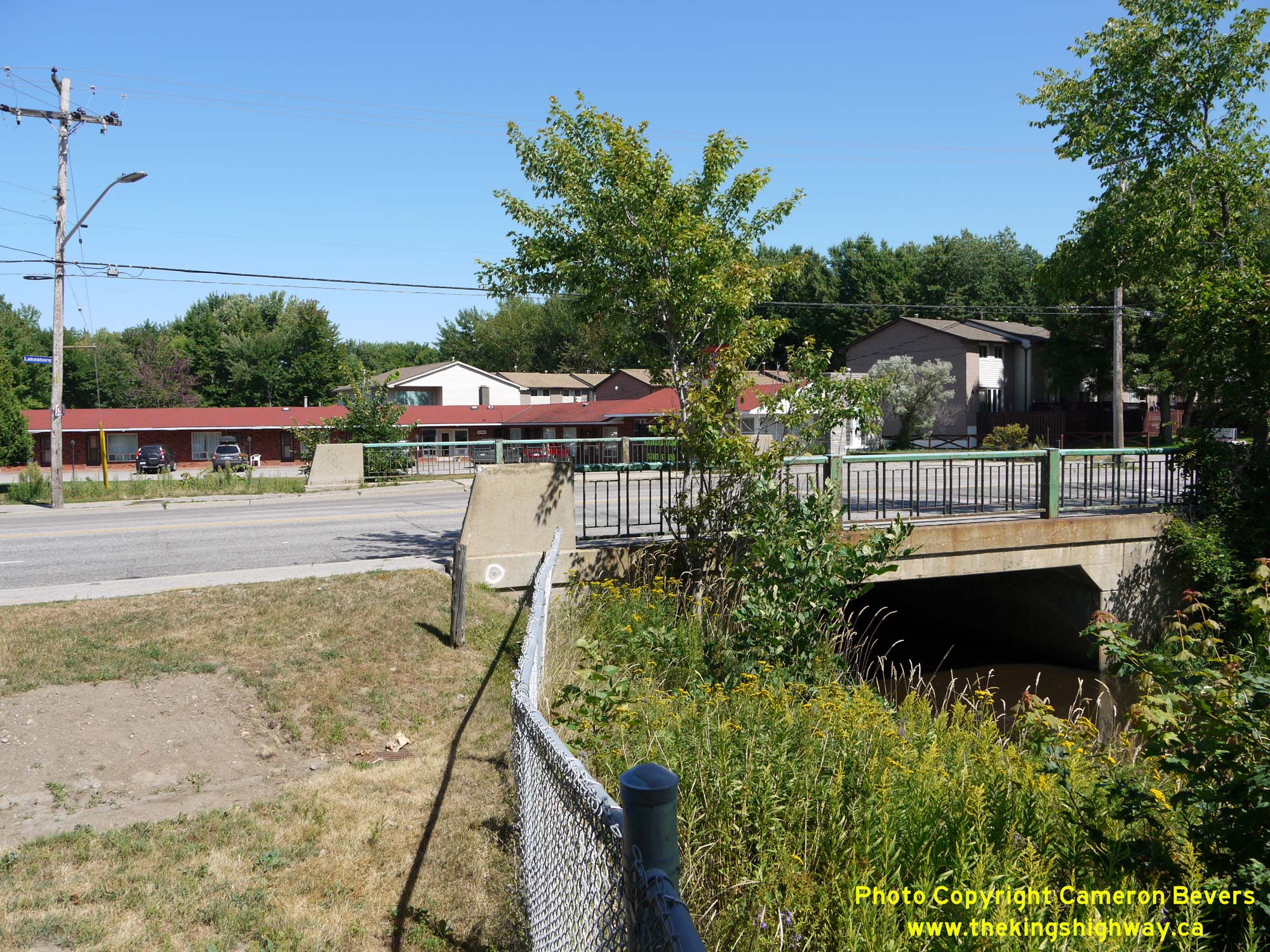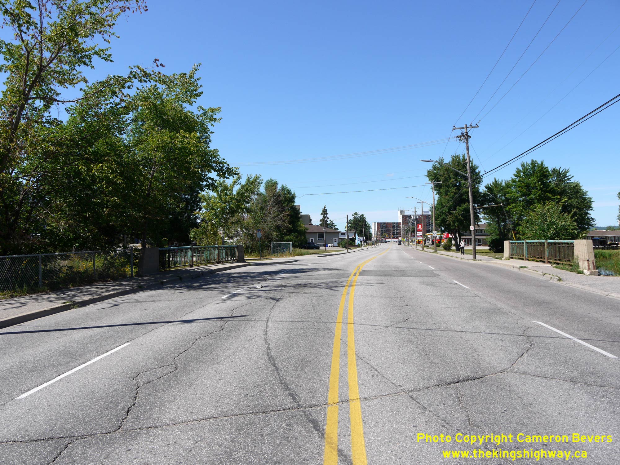 Left - Facing south along Lakeshore Drive (Hwy 11B) at the Parks Creek Bridge in North Bay. See an