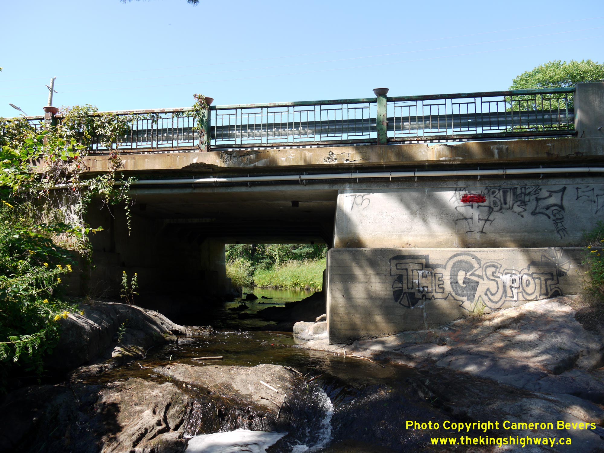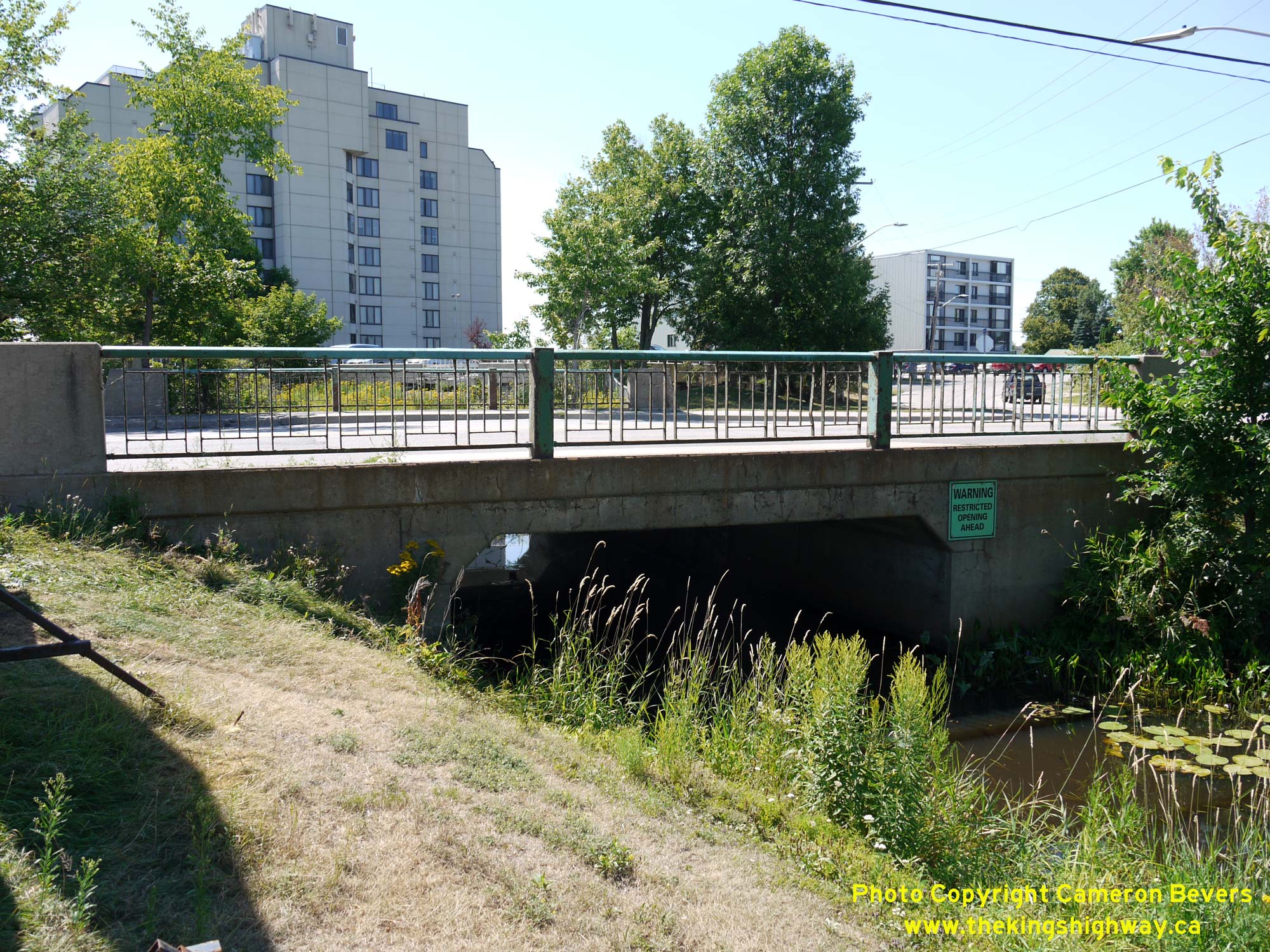 Left - Western side of the Parks Creek Bridge on Hwy 11B (Lakeshore Drive) in North Bay. This bridge is located between the intersections of