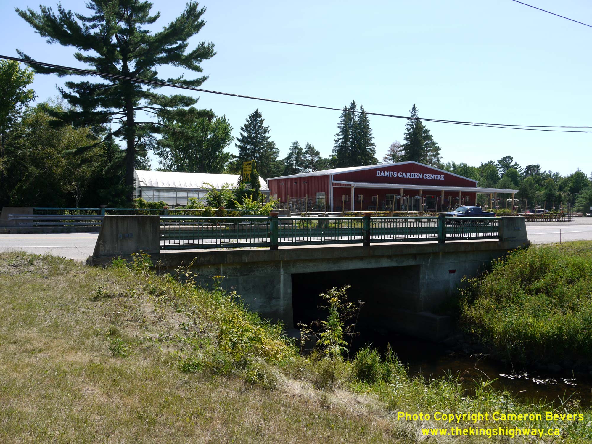 Left - Eastern side of the Lavasse River Bridge (Site #43-104) on Hwy 11B (Lakeshore Drive) at Nipissing Junction between Callander and North Bay. See an