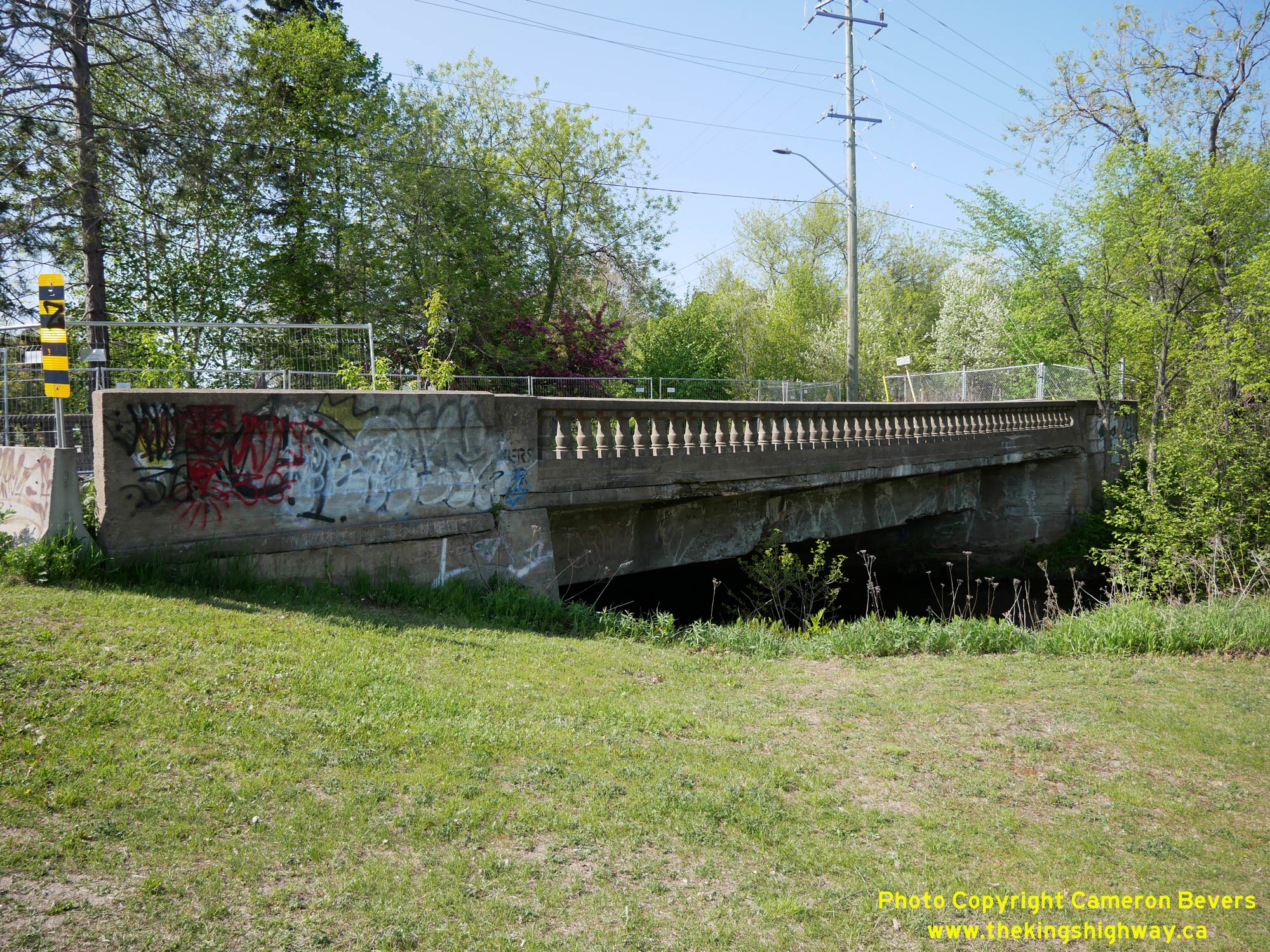 Enlarged Photo Here.(Photograph taken on May 27, 2023 - © Cameron Bevers) Right - Western side of the Chippewa Creek Bridge on Stanley Street (Old Hwy 11B) in North Bay. See an