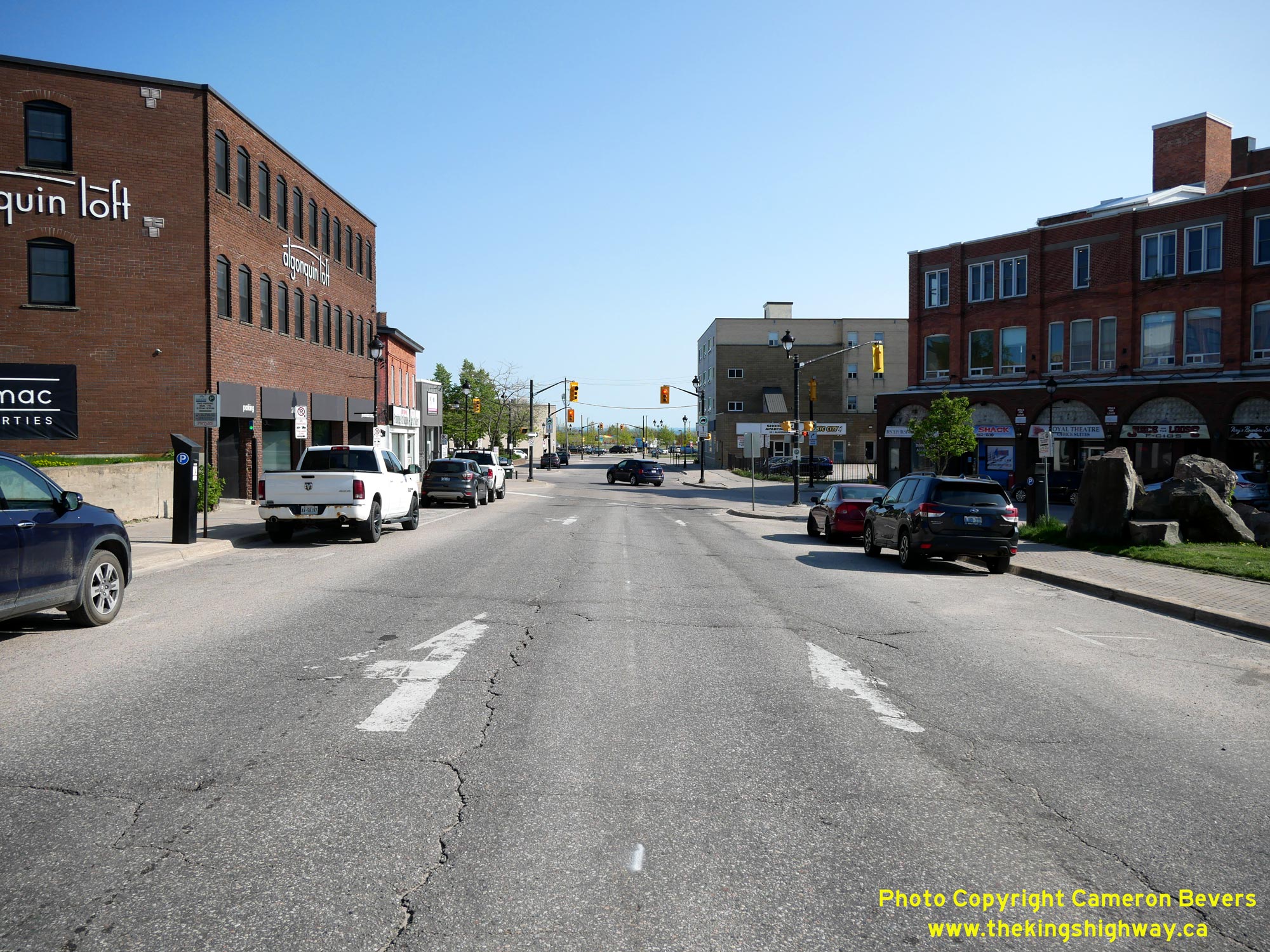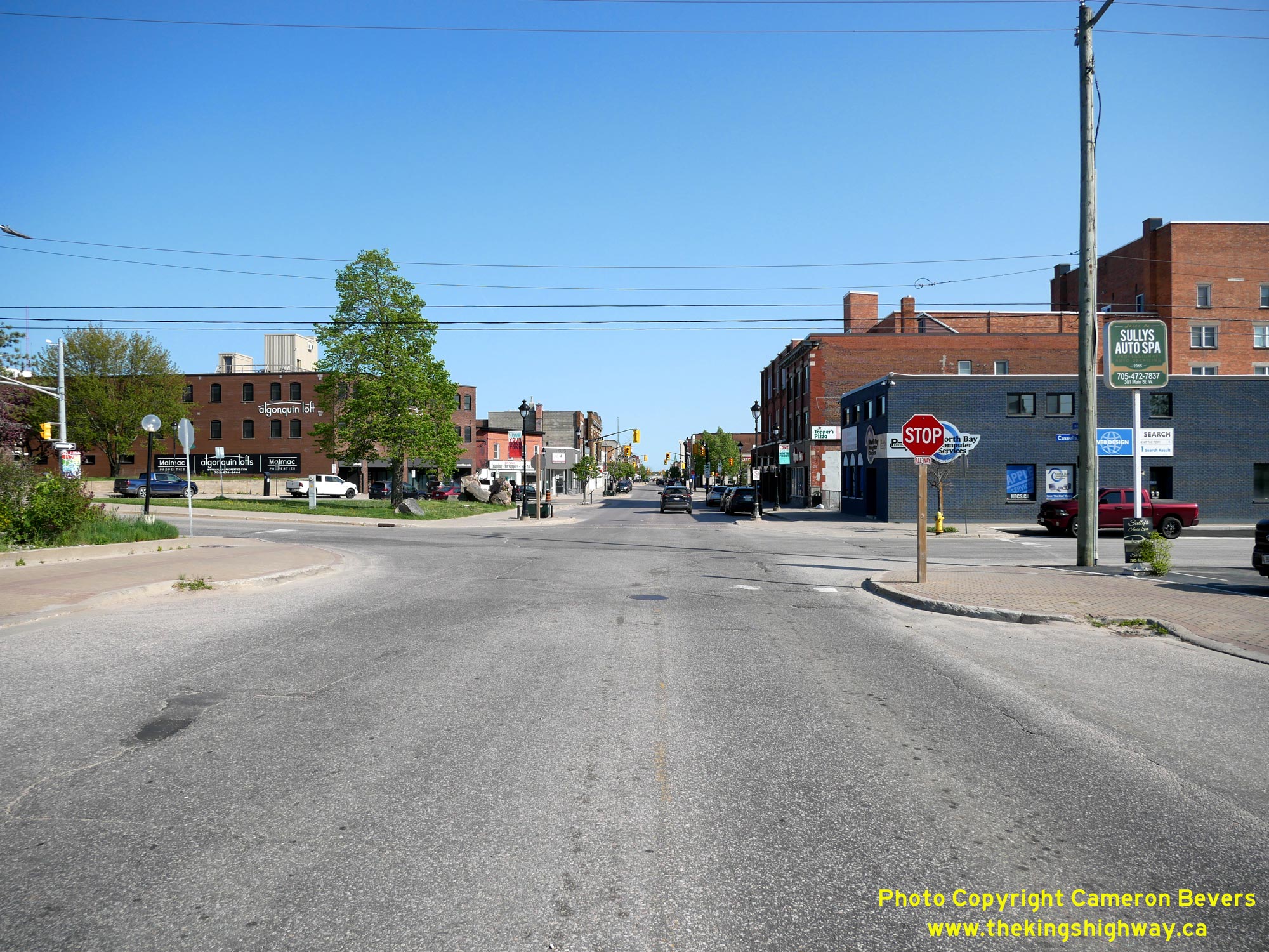 McIntyre Street. Northbound and southbound Hwy 11B followed a parallel one-way street system through Downtown North Bay. See an