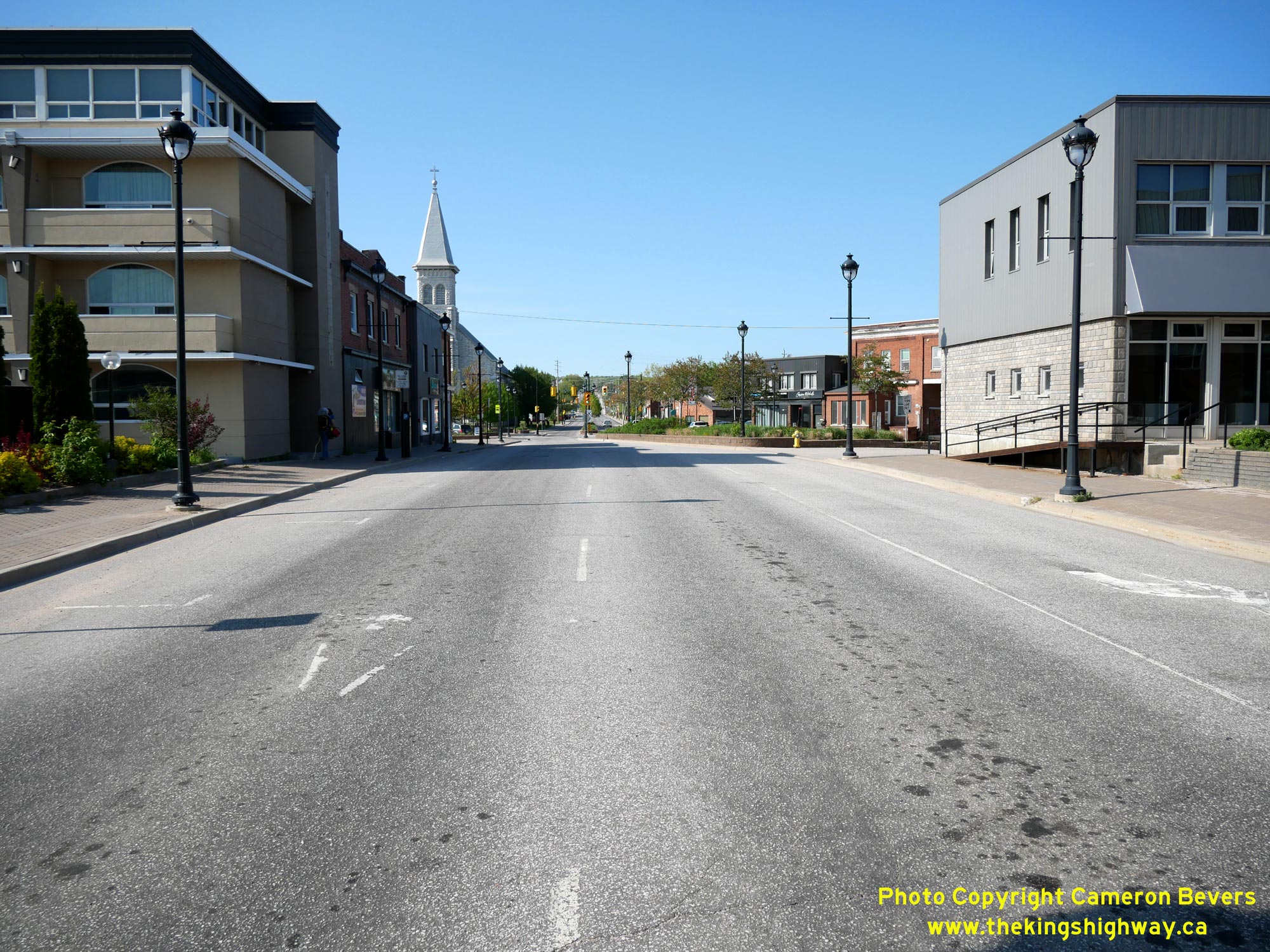 Hwy 11B through the city centre. See an