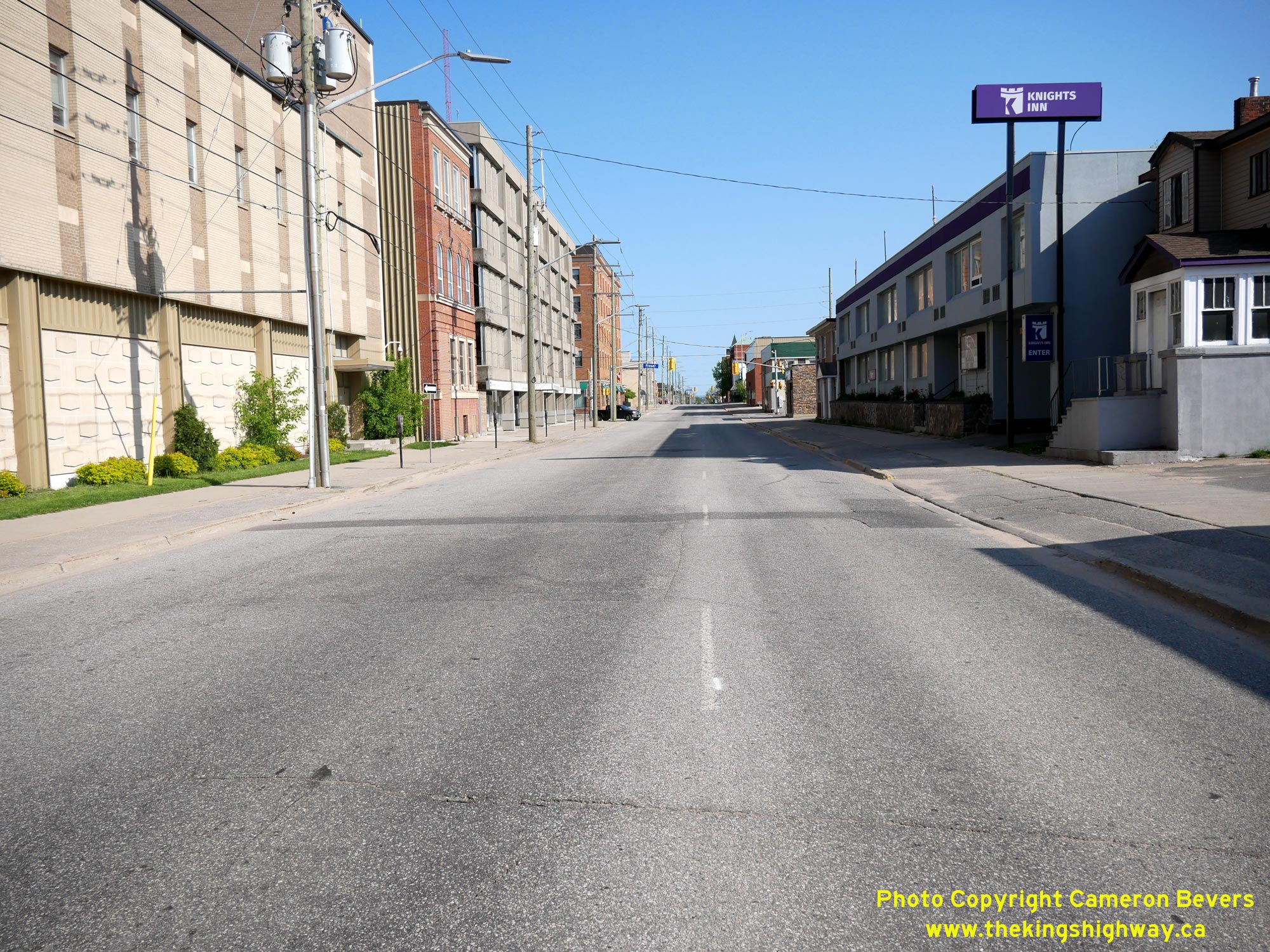 ![]() Left - Facing south along the southbound route of Hwy 11B via Algonquin Avenue towards Main Street (Hwy 17B) in Downtown North Bay. Following the conversion