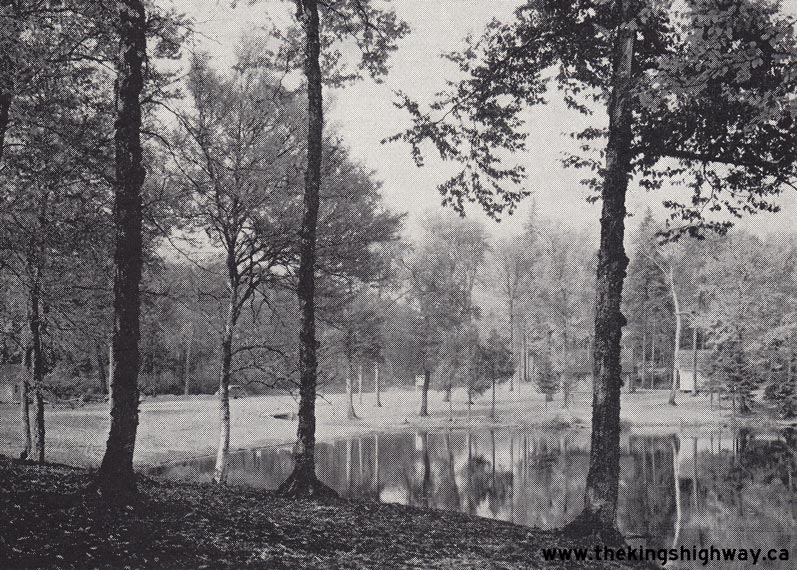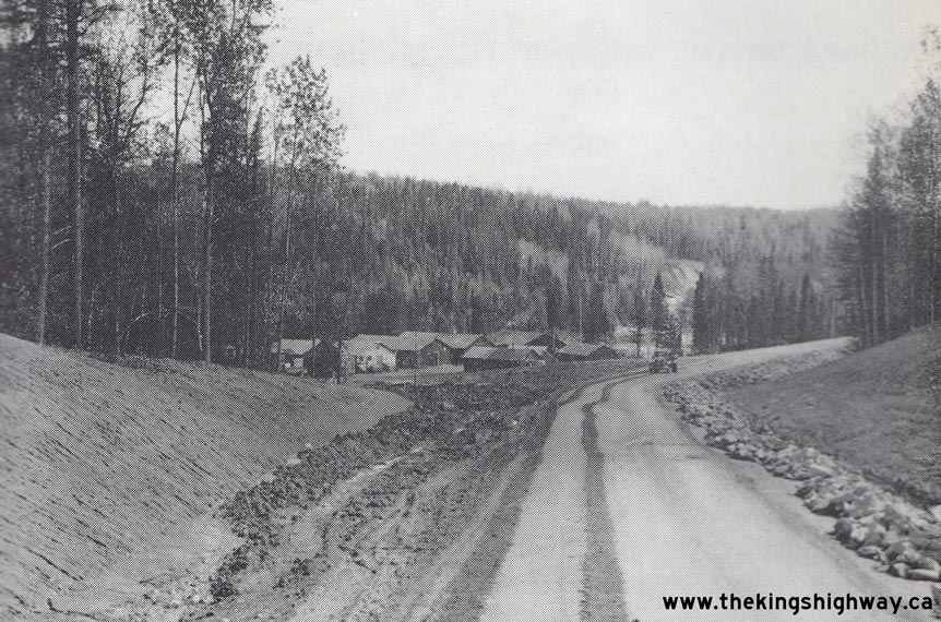 background. This was one of several temporary camps built along the highway to house engineering and construction staff during the highway's construction. (Photo courtesy of Ontario Ministry of Transportation - © King's Printer for Ontario, 1941)