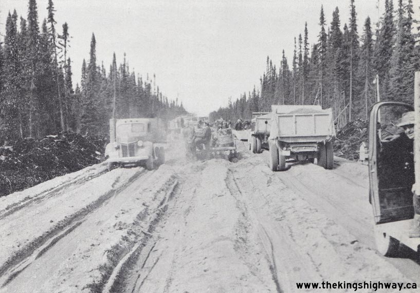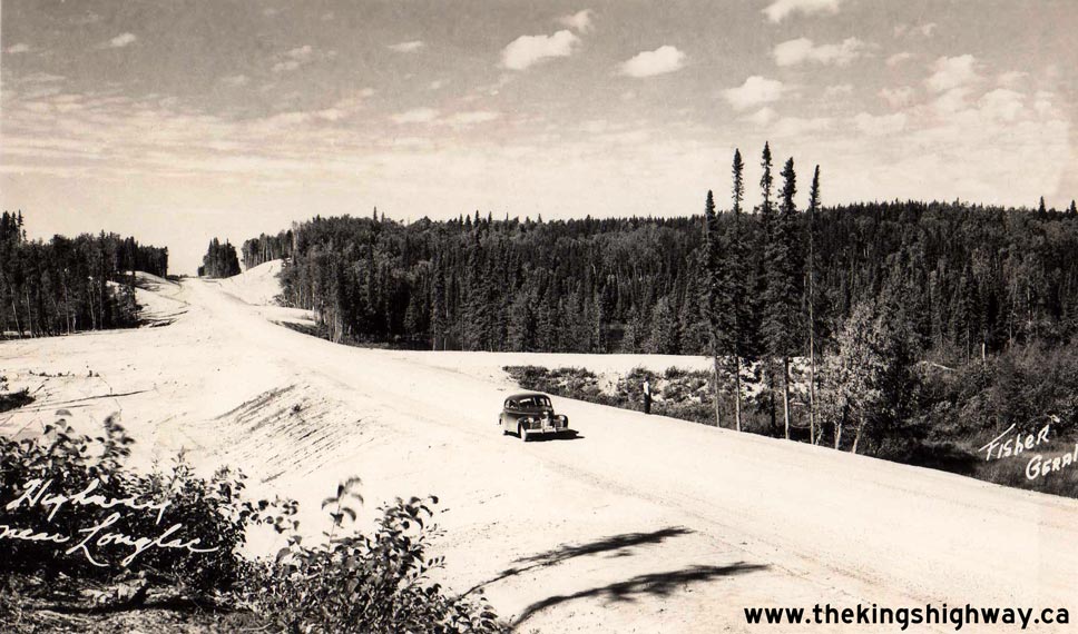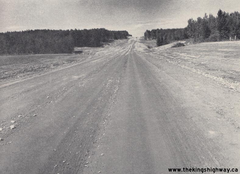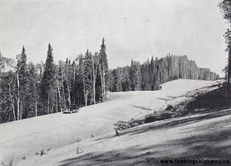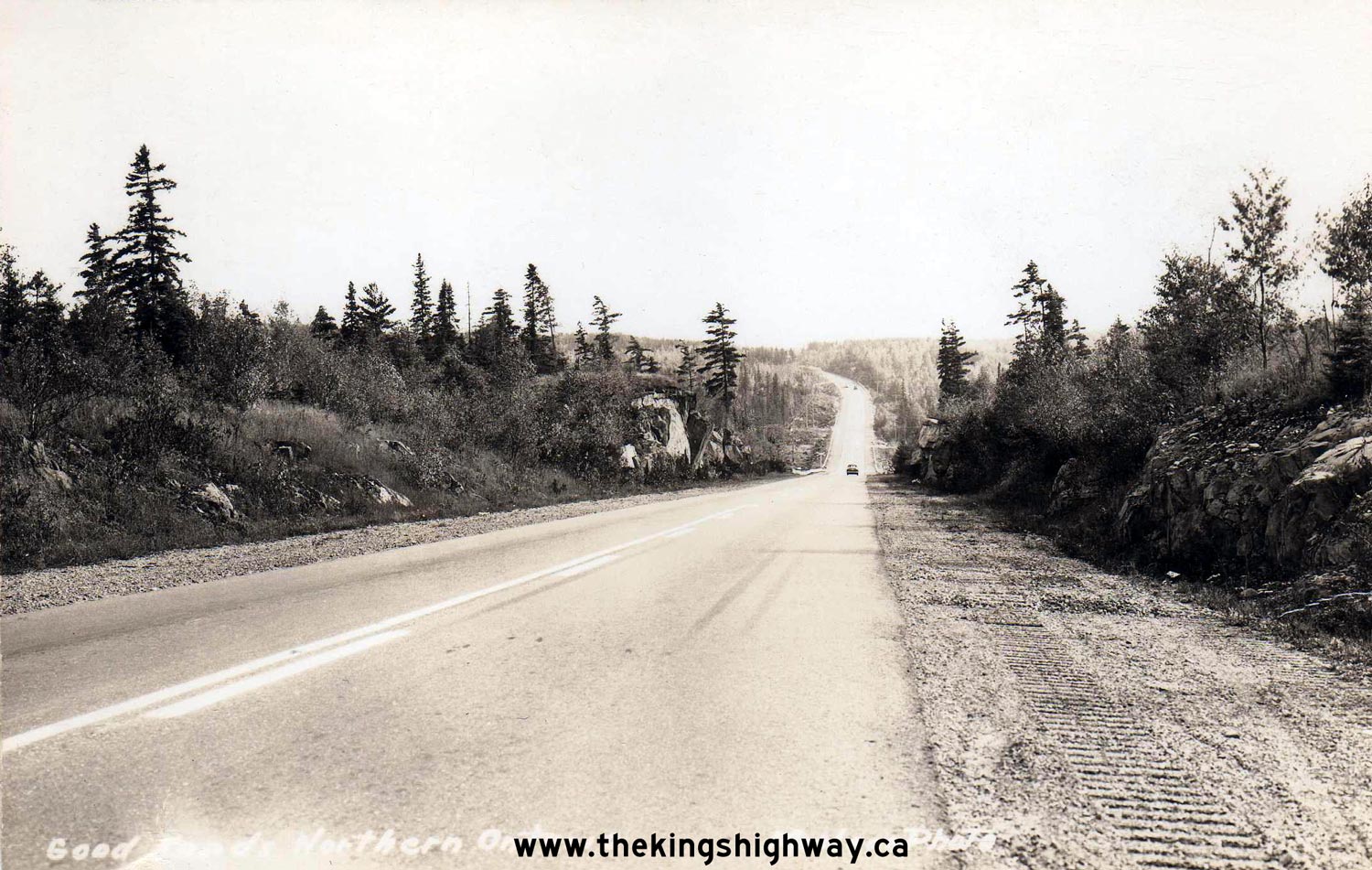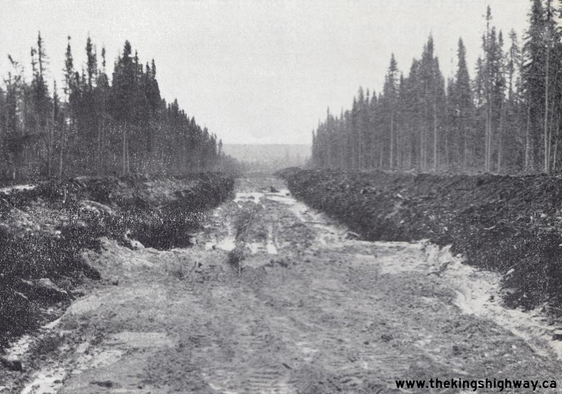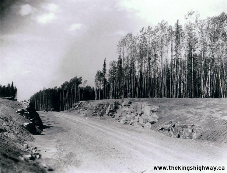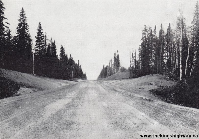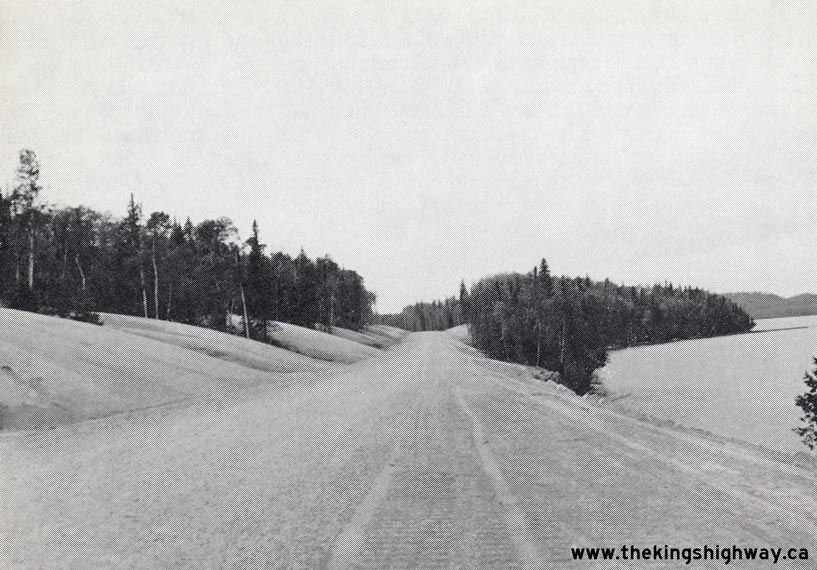 Above - Completed section of the Hearst-Geraldton Highway (Hwy 11) in 1942 (Photo courtesy of Ontario Ministry of Transportation - © King's Printer for Ontario, 1942)
