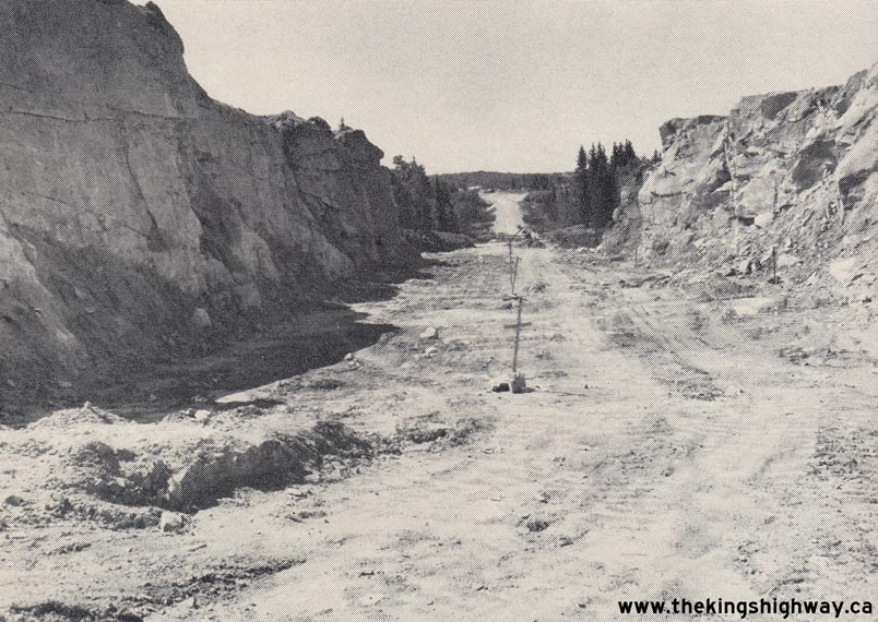 Above - Grading for a revised alignment of Hwy 11, 6 miles north of Ramore (1948) (Photo courtesy of Ontario Ministry of Transportation - © King's Printer for Ontario, 1948)
