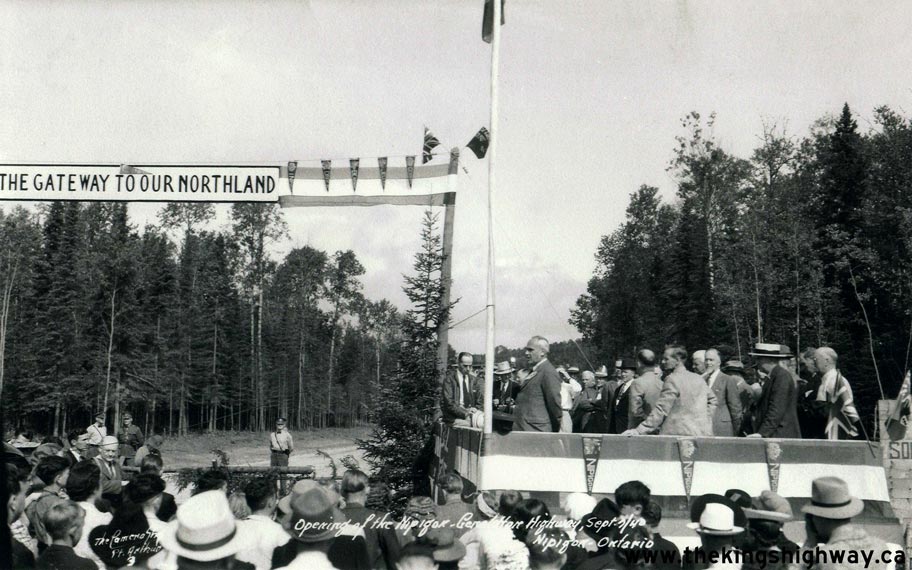 Above - Official opening ceremony for the Nipigon-Geraldton Highway (Hwy 11). The highway was officially opened to traffic by Highways Minister Thomas Baker