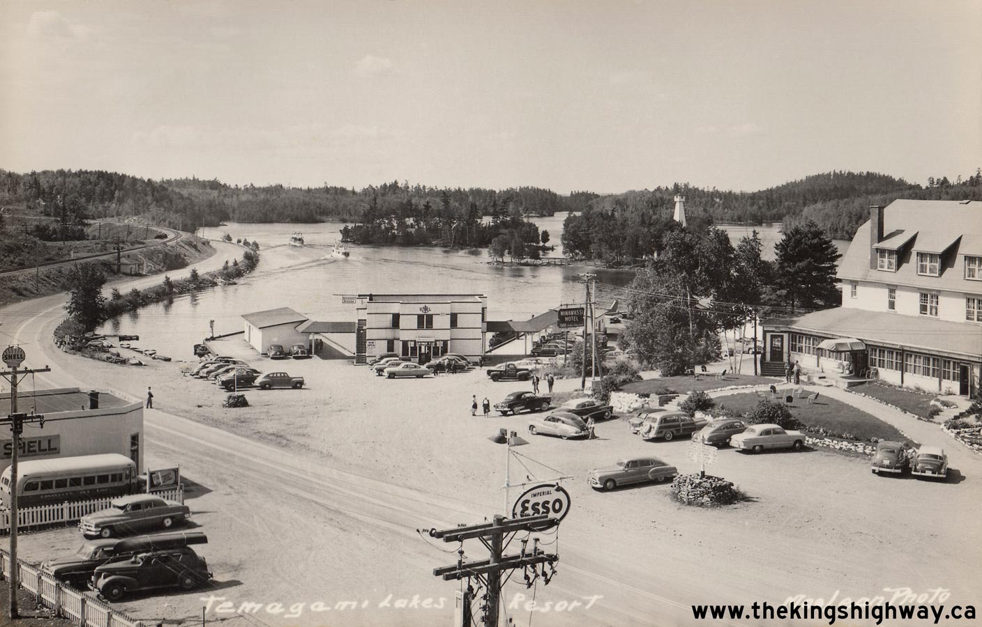 Above - Circa 1950 postcard view of Hwy 11 at Temagami, facing south towards North Bay. See an