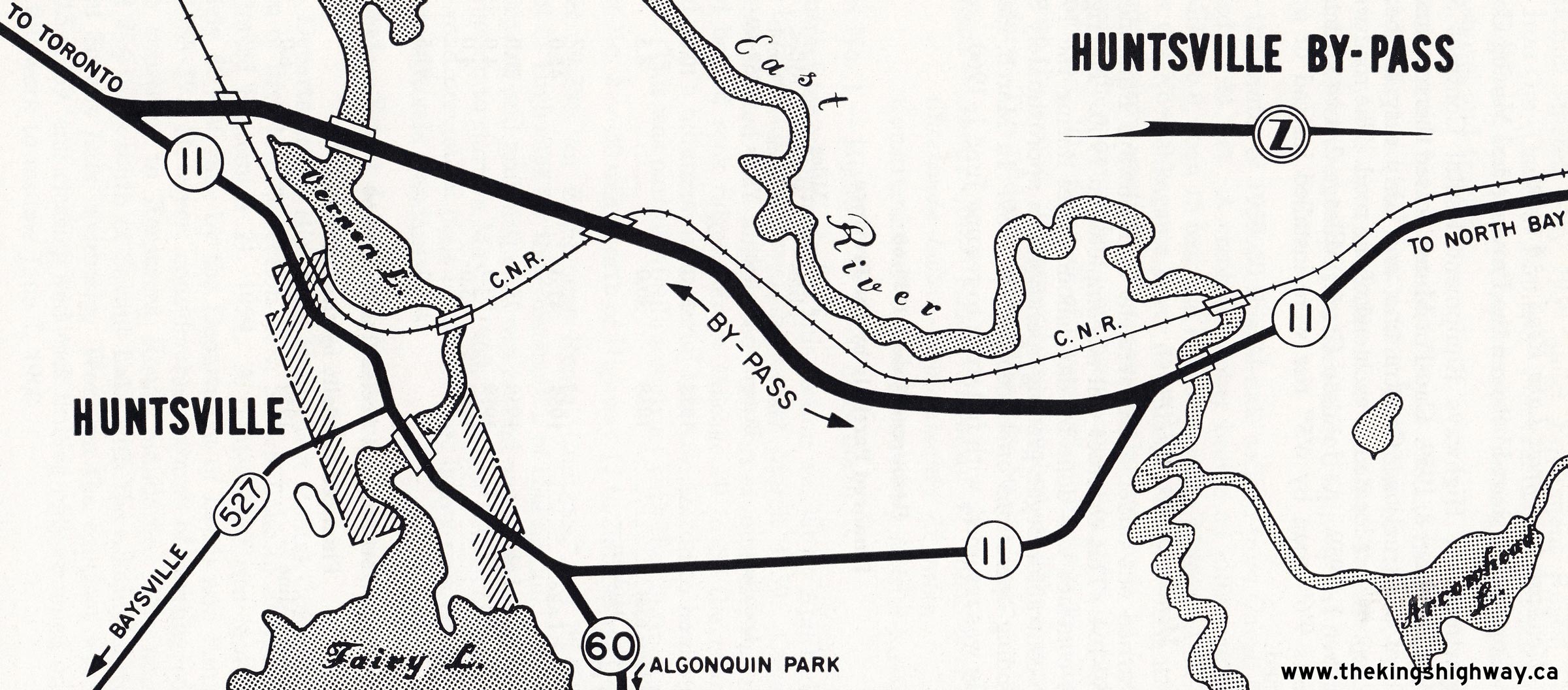 the early 1970s, it wasn't possible to reach Hwy 60 directly from the Huntsville Bypass (the relocated route of Hwy 11). This highway junction was extensively