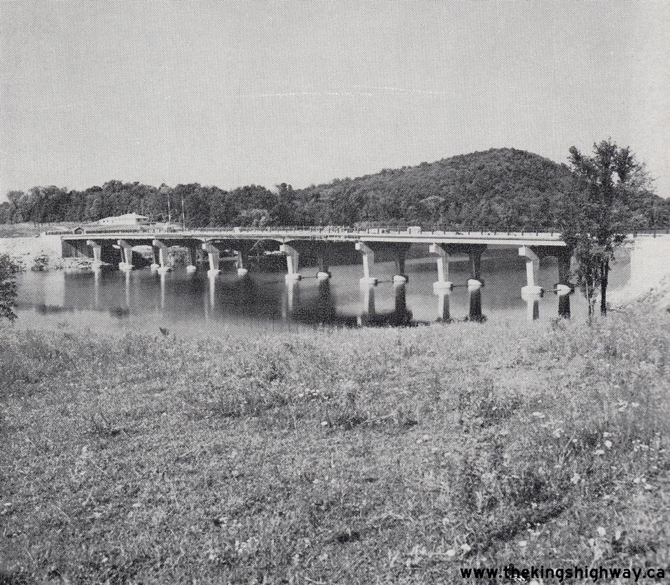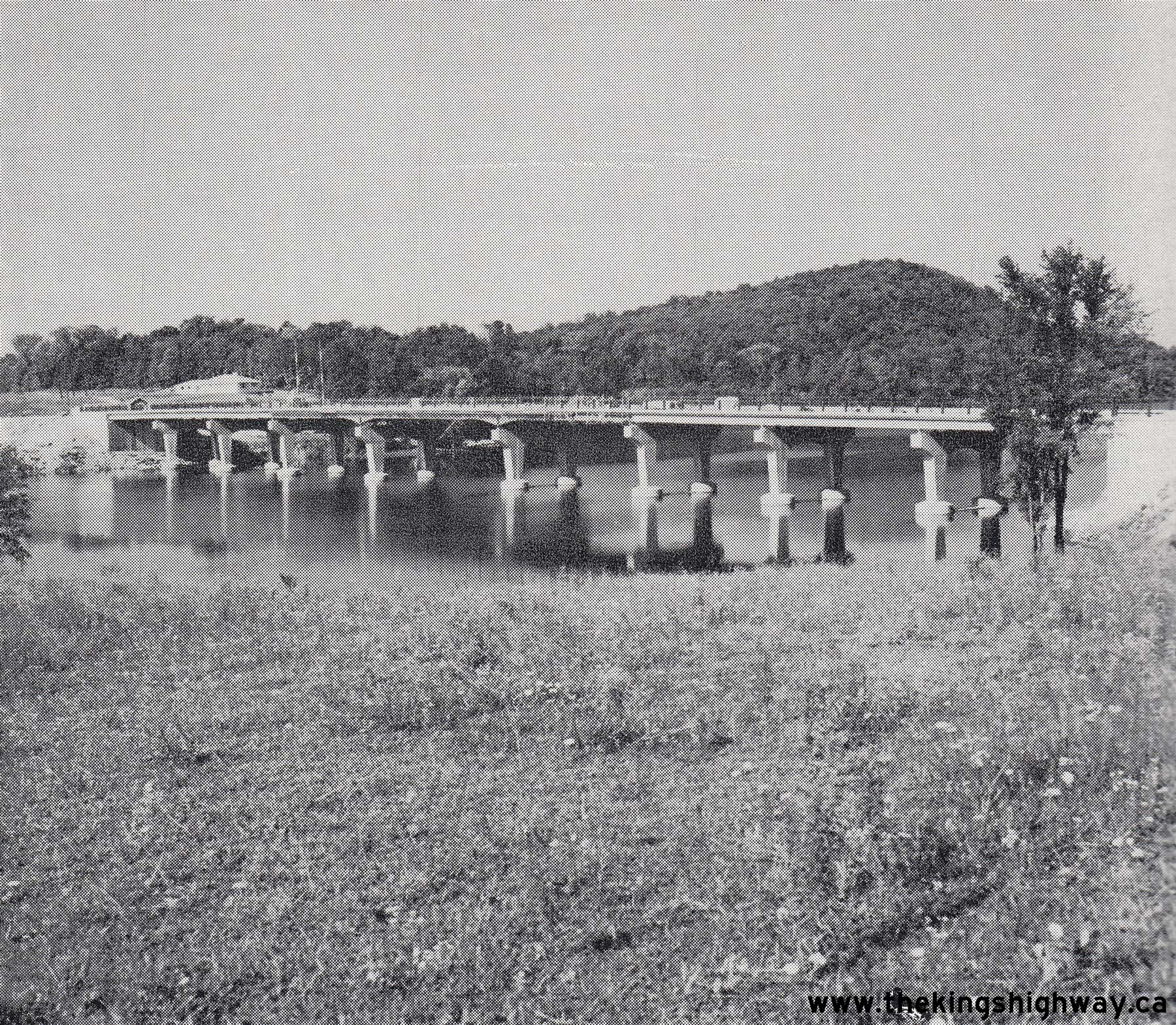 Above - Completed Vernon Narrows Bridge on the new Huntsville Bypass in 1959, Contract #1957-32. See an