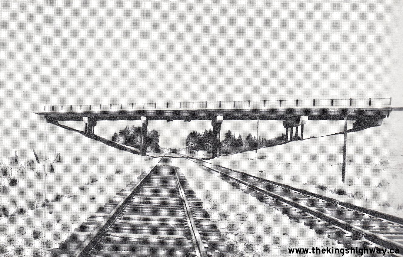 Above - Completed Canadian National Railway (CNR) Overhead on the Orillia Bypass. Photo taken on July 6, 1954. (Photo courtesy of Ontario Ministry of Transportation - © King's Printer for Ontario, 1954)