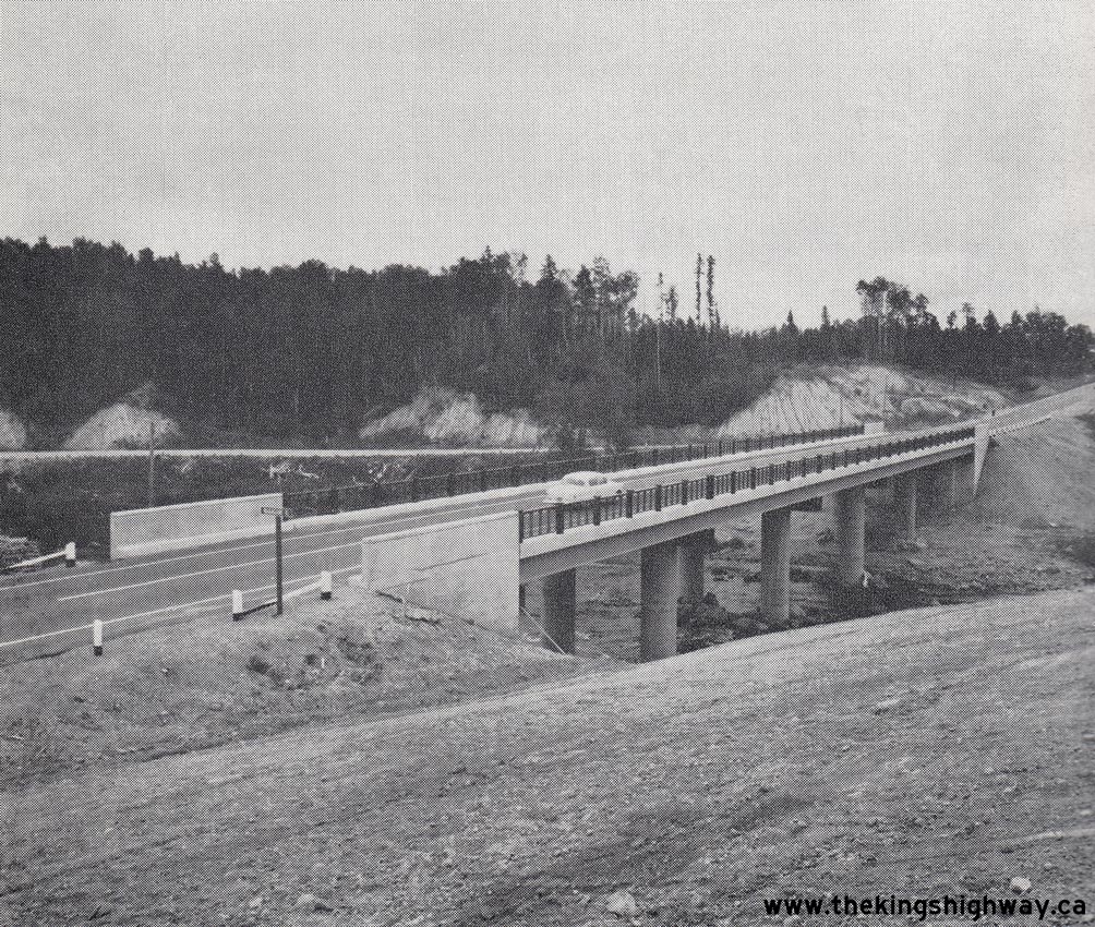 officially opened to traffic on September 23, 1958. Photo taken in 1955. (Photo courtesy of Ontario Ministry of Transportation - © King's Printer for Ontario, 1955) ![]()