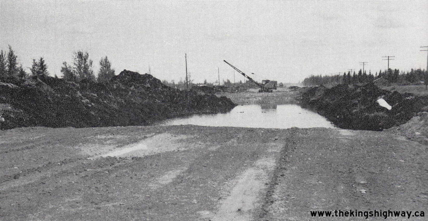 Above - Muskeg excavation for a revision of Hwy 11 near Driftwood west of Cochrane in 1959, Contract #1957-87. Although motorists may take Northern Ontario's