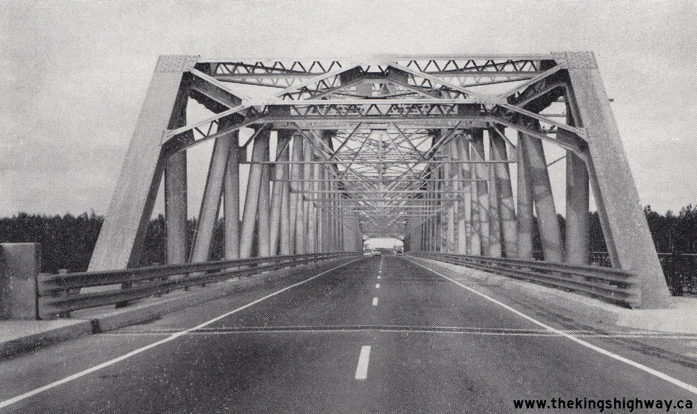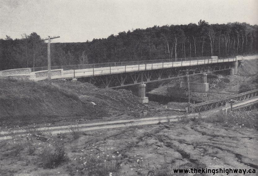 Hwy 11 north of Toronto, particularly in the peak summer months. The new high-level bridge seen here completely eliminated this traffic bottleneck. Photo taken in
