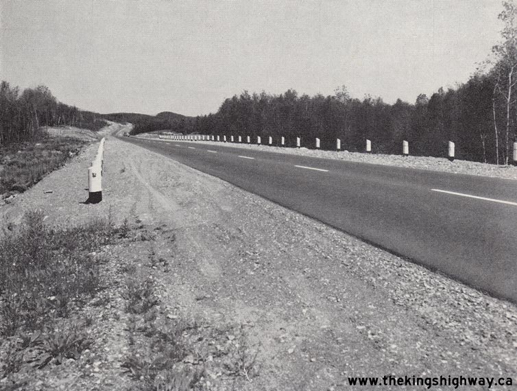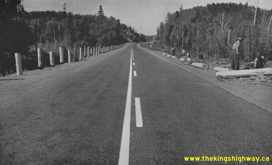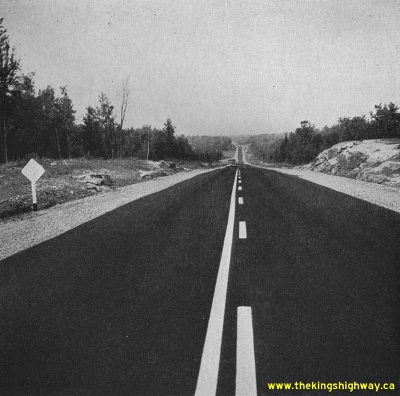 Above - Newly-surfaced section of Hwy 11 near Klotz Lake east of Longlac, Contract #1955-163. See an