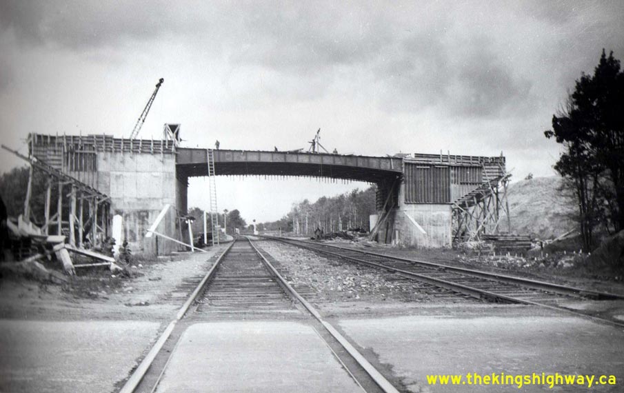 Above - Construction of the Canadian National Railway (CNR) Overhead on the new Hwy 11 Bypass at Washago in 1954. See an