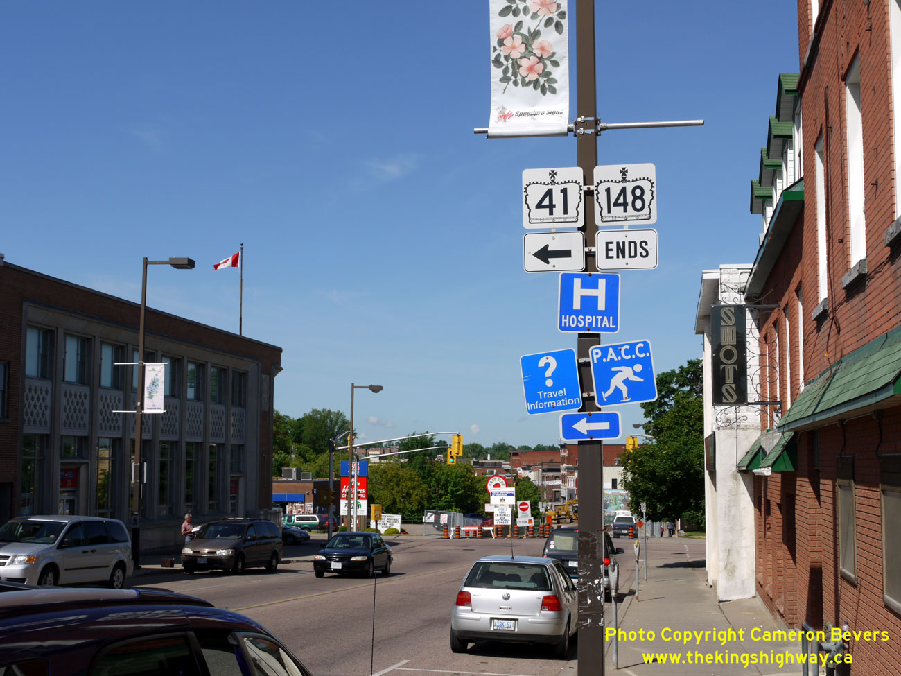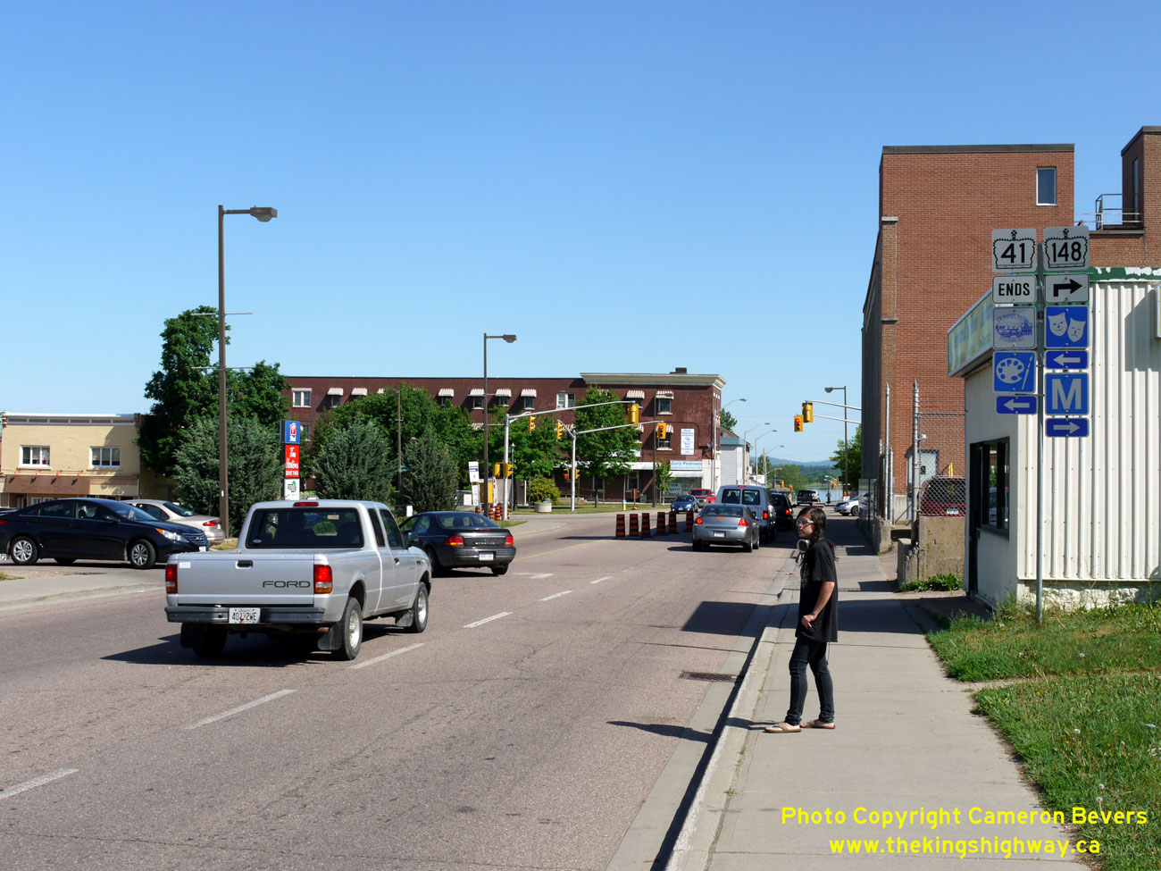 Left - Approaching the northern terminus of Hwy 41 in Downtown Pembroke. Although Hwy 41 is fully signed through Pembroke, the section of Hwy 41