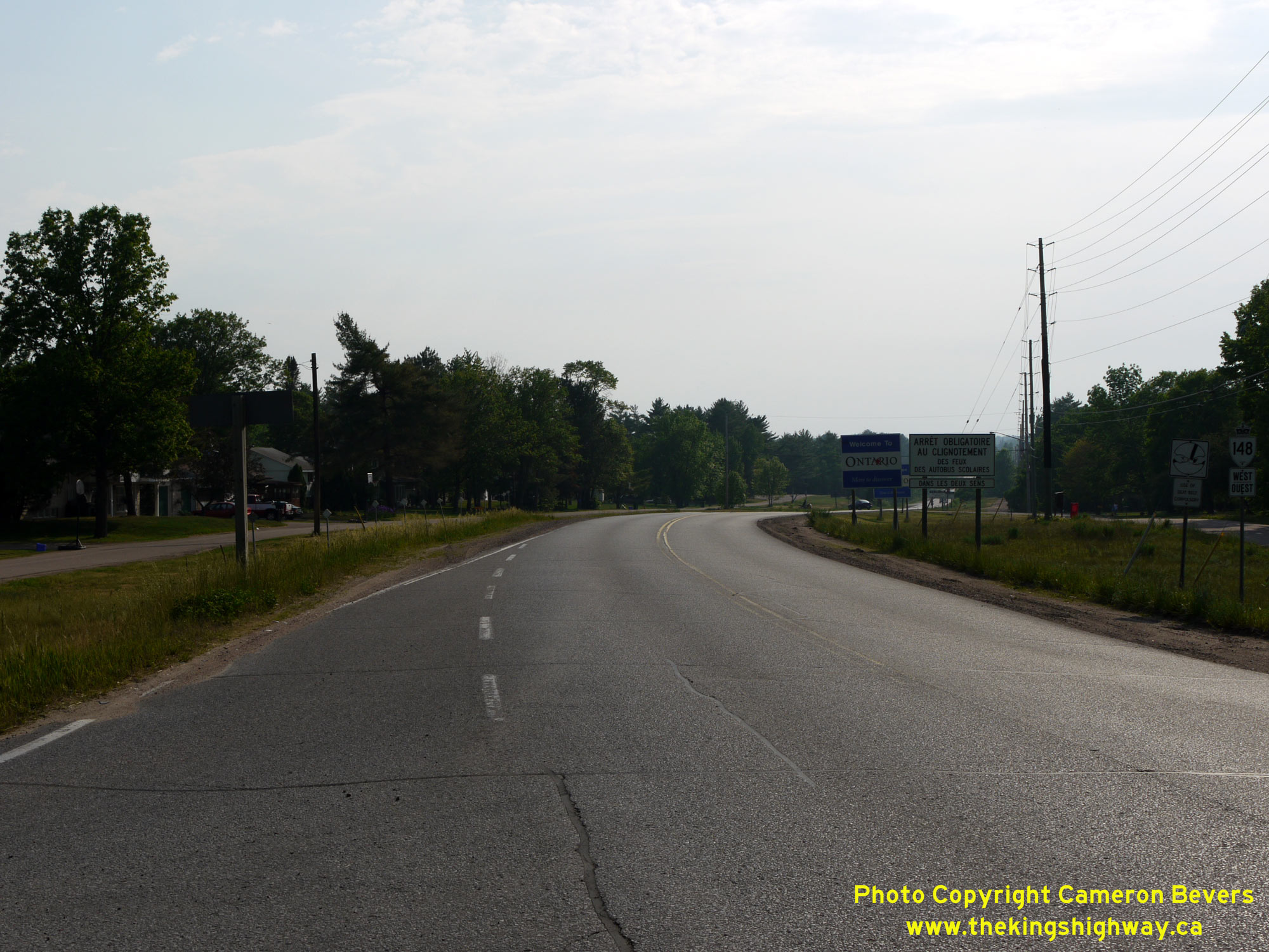 ![]() Left - Facing west along Hwy 148 from Cotnam Street. This is the first intersection along Hwy 148 on the Ontario side of the boundary. Cotnam Street forms a
