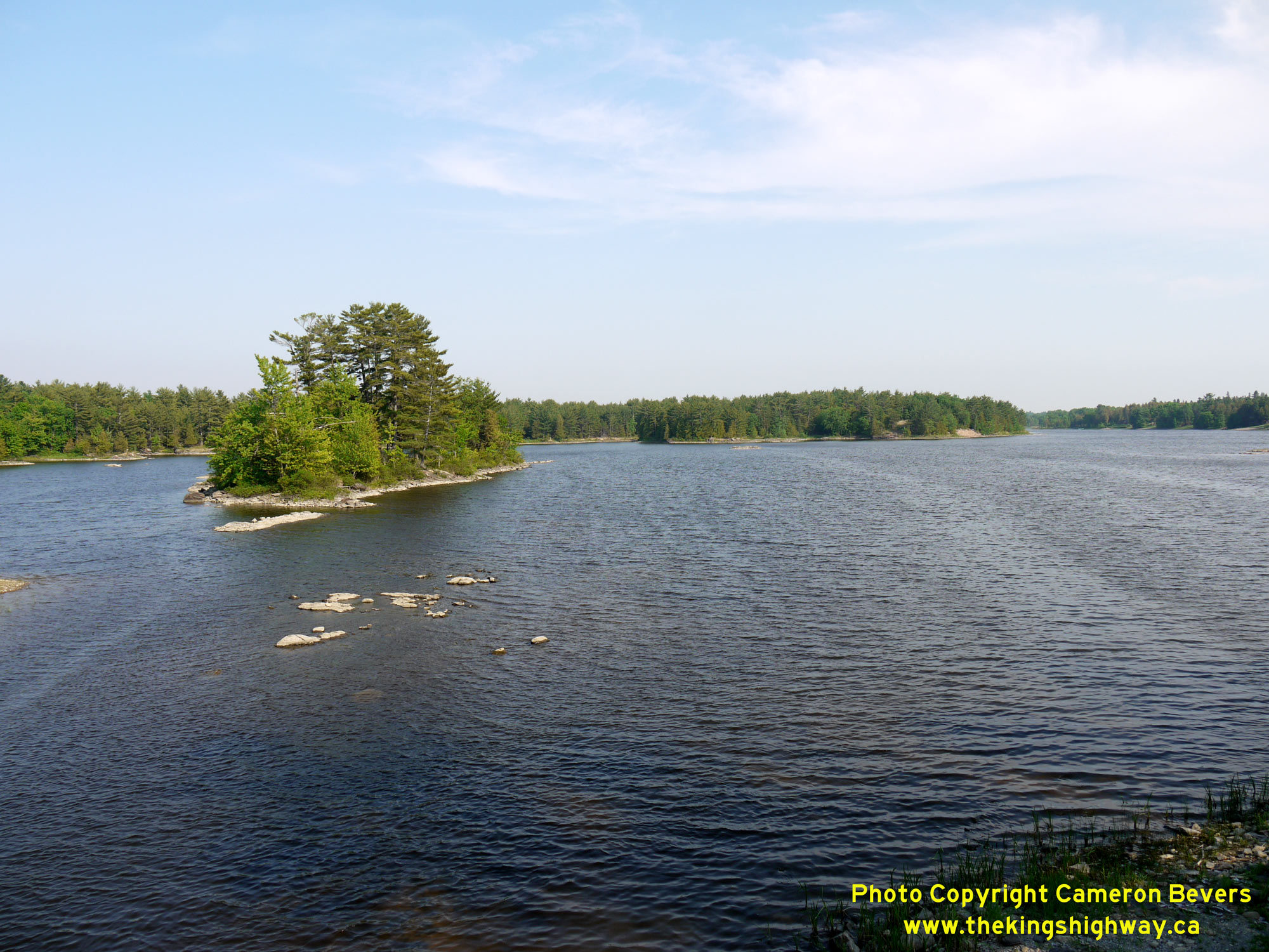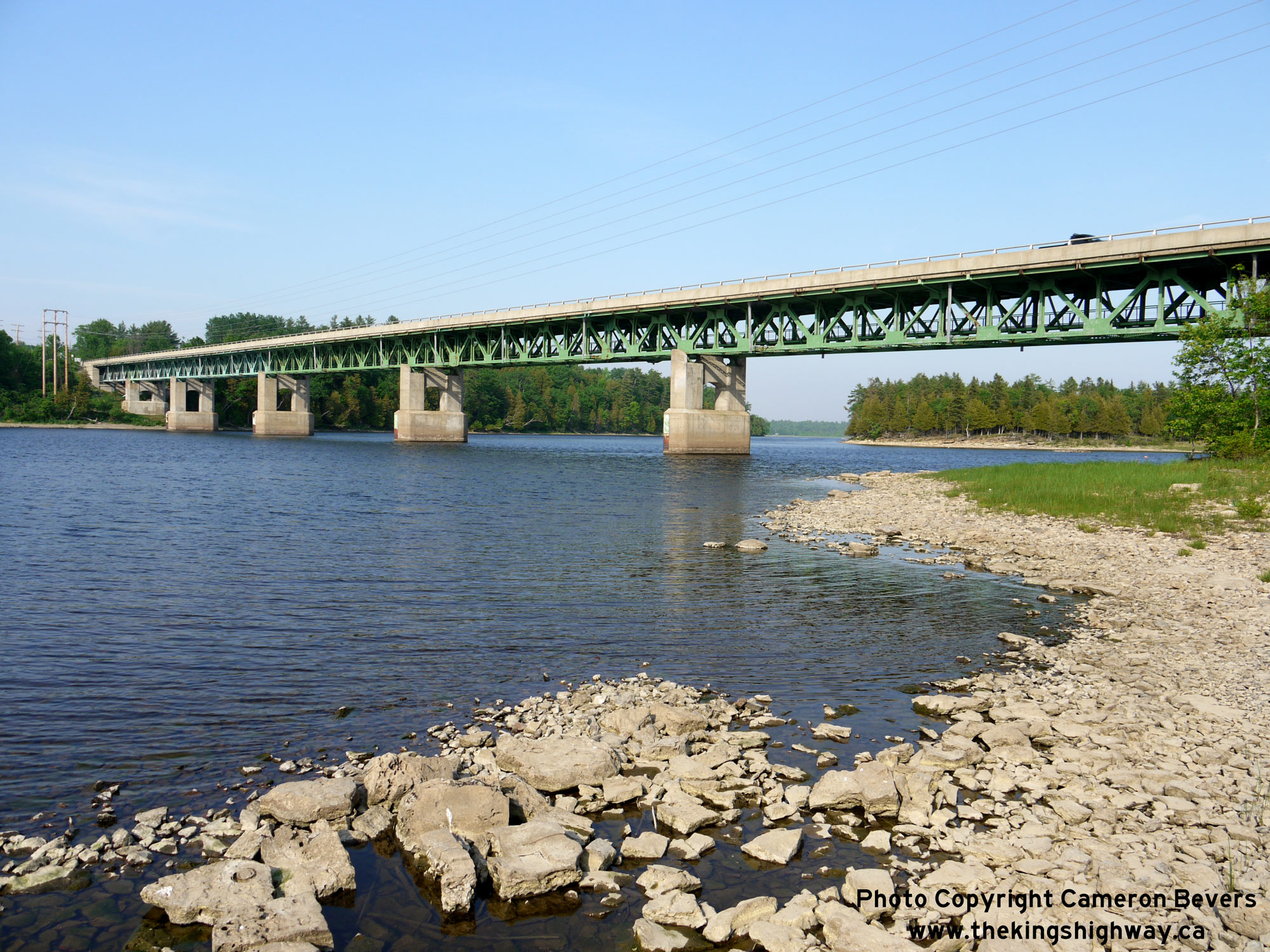 Enlarged Photo Here.(Photograph taken on May 31, 2010 - © Cameron Bevers) Right - Facing east across Des Allumettes Bridge on Hwy 148 towards Waltham, Quebec. See an
