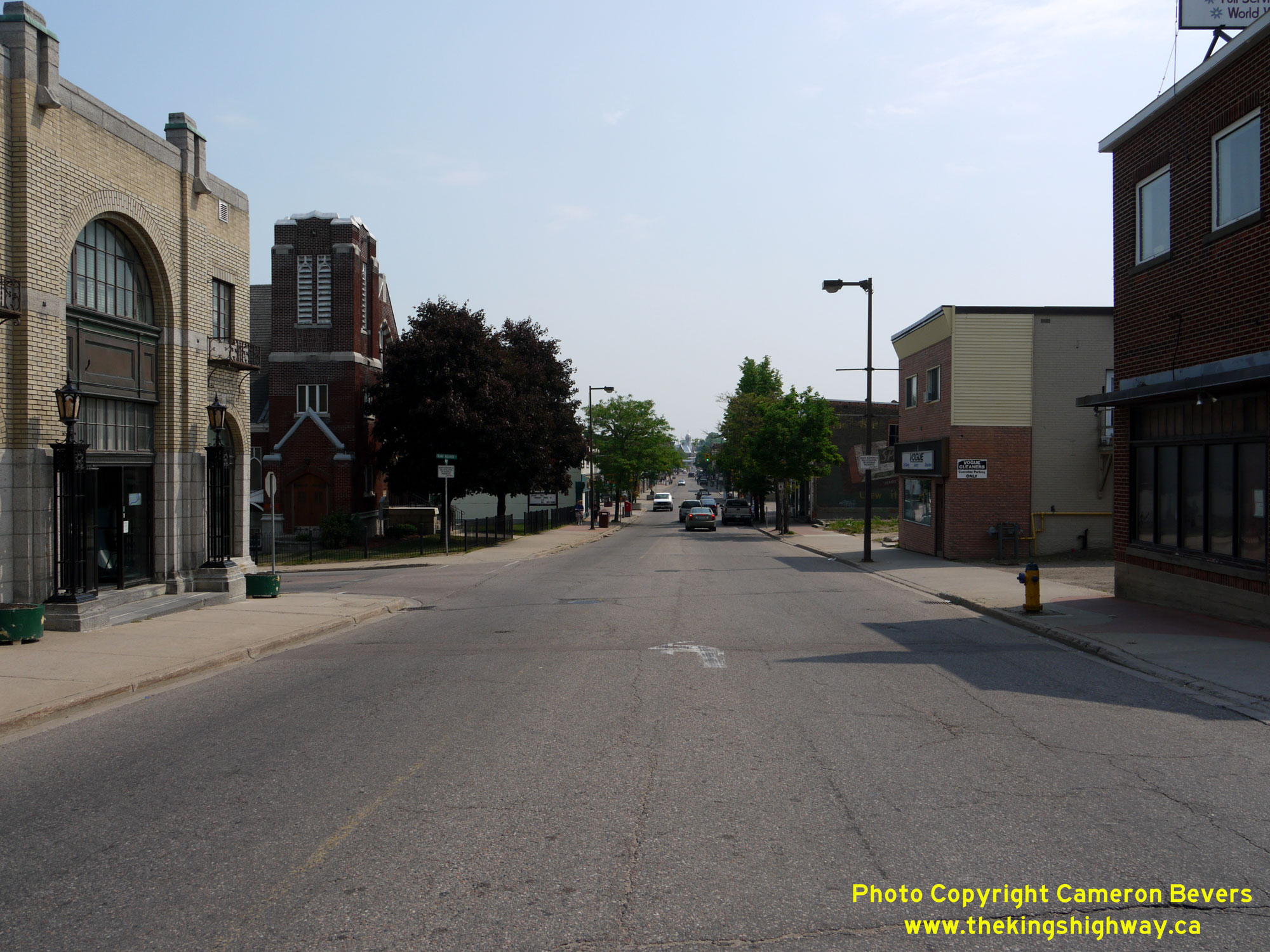 Street. See an Enlarged Photo Here.(Photograph taken on June 4, 2010 - © Cameron Bevers) Right - Facing east along Pembroke Street (Old Hwy 17, later known as Hwy 148) just east of Hincks Street. Pembroke's City Centre lies just ahead. Pembroke is