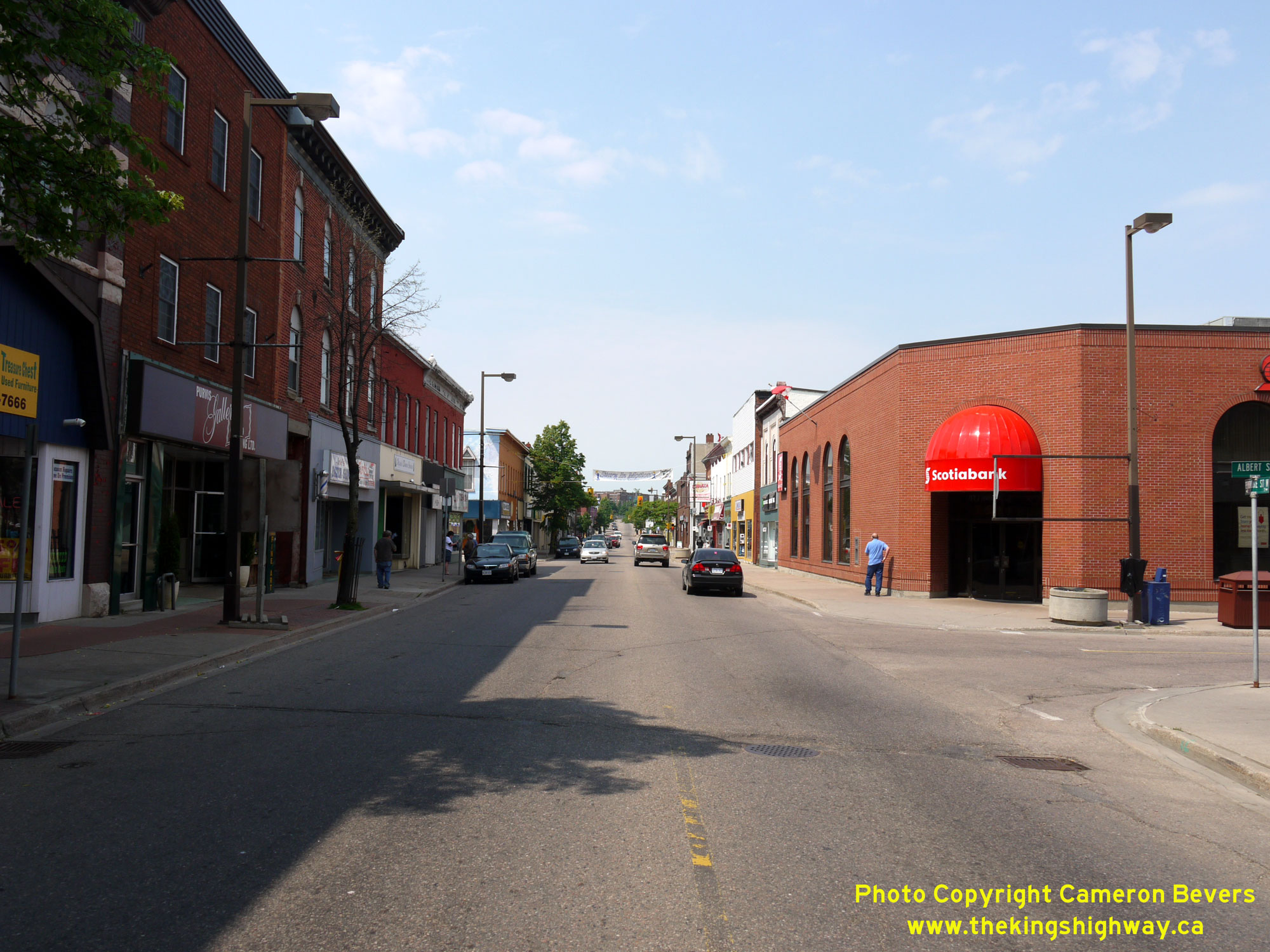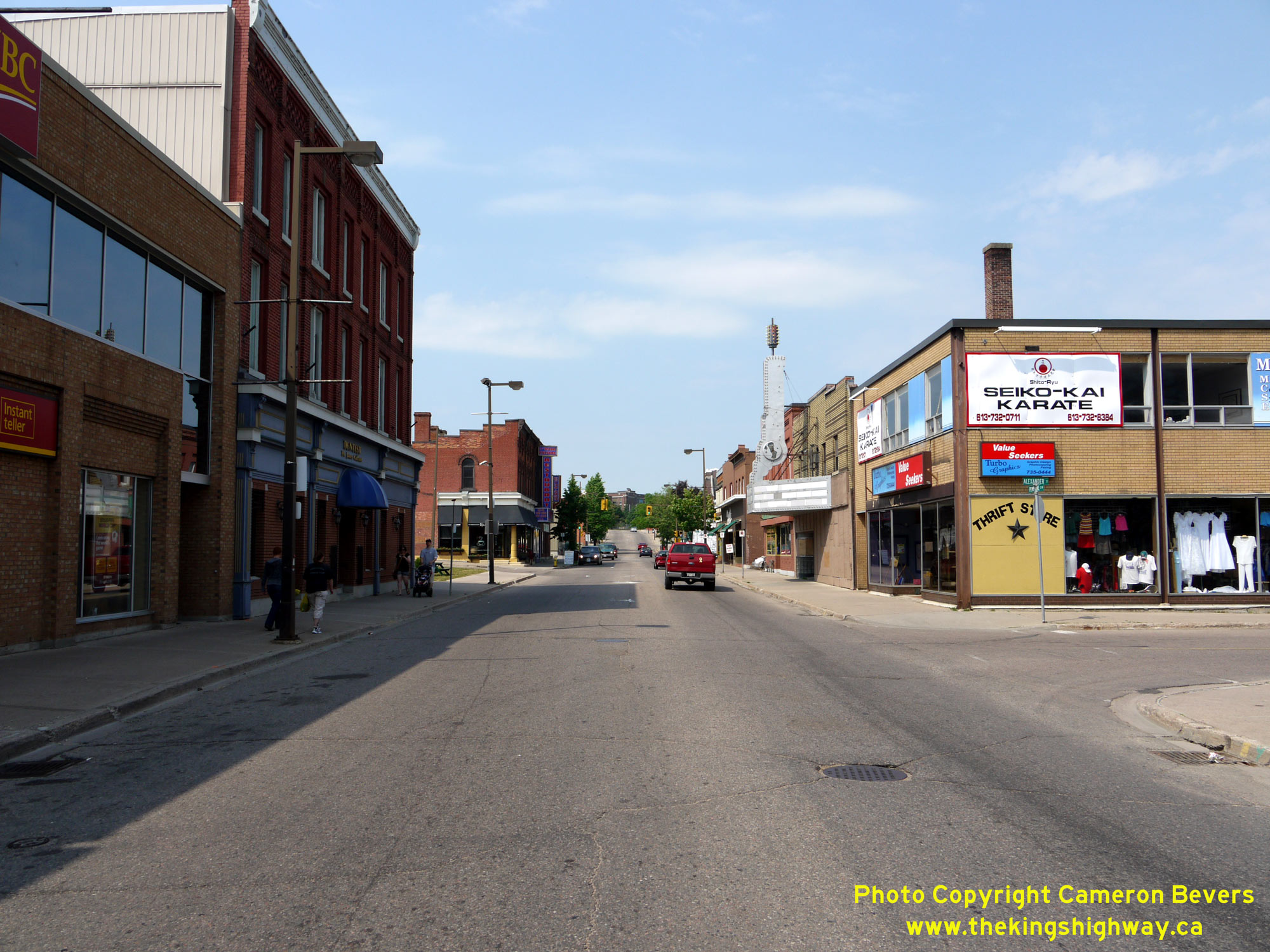 Enlarged Photo Here.(Photograph taken on May 31, 2010 - © Cameron Bevers) Right - Facing west along Pembroke Street (Old Hwy 17, later known as Hwy 148) at Alexander Street in Downtown Pembroke. When compared to the busy main street