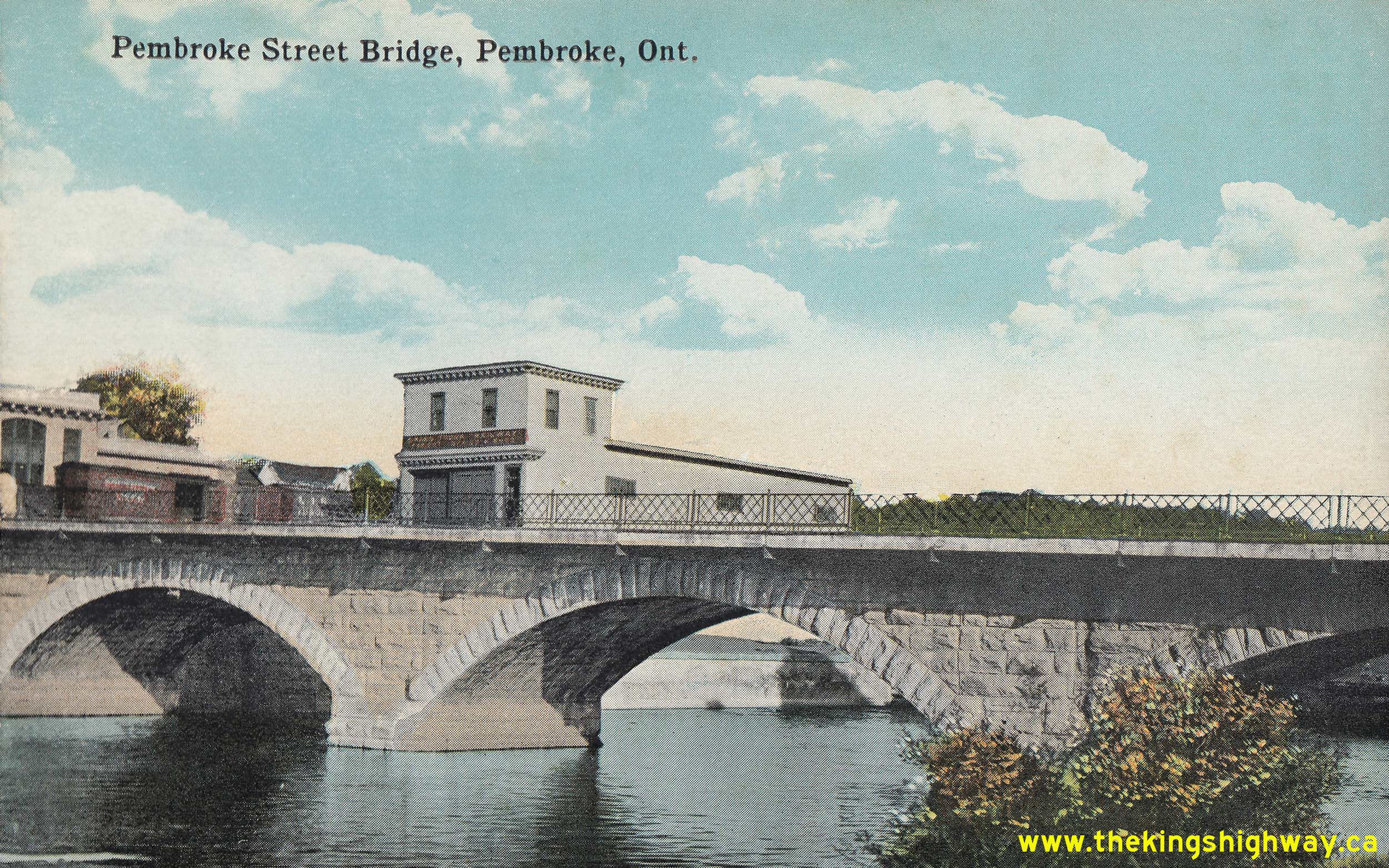 Above - Circa 1925 postcard view of the Muskrat River Bridge on Pembroke Street (Hwy 17, later known as Hwy 148) in Downtown Pembroke. This attractive