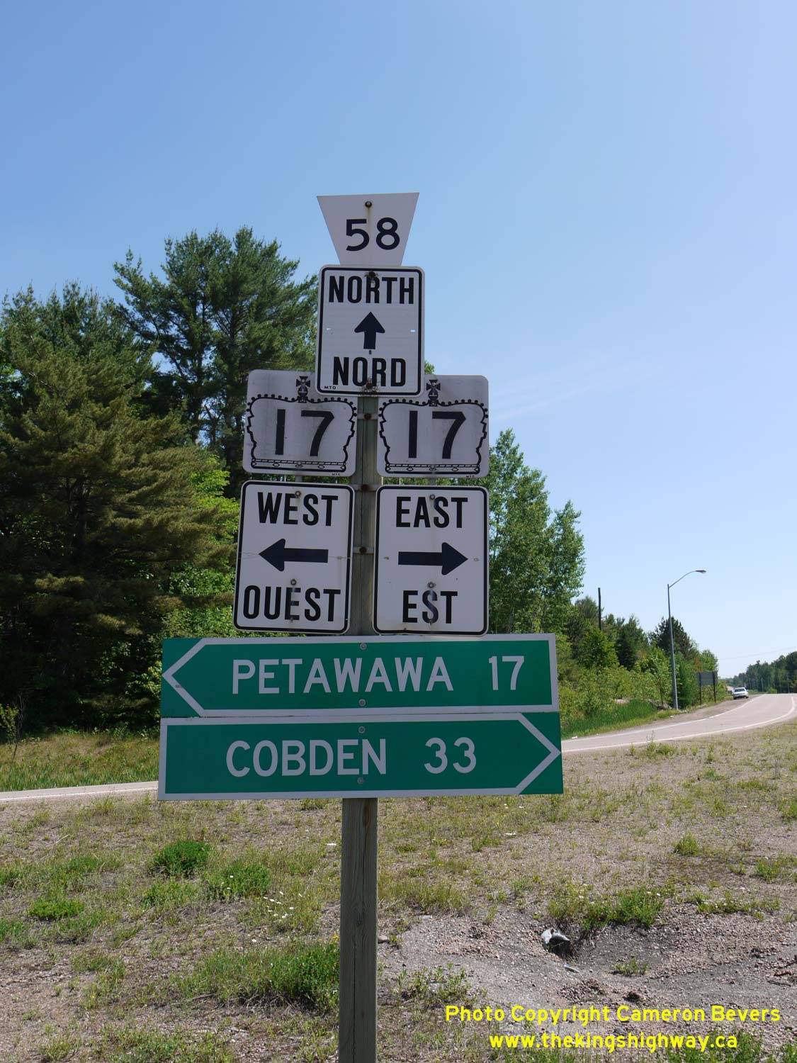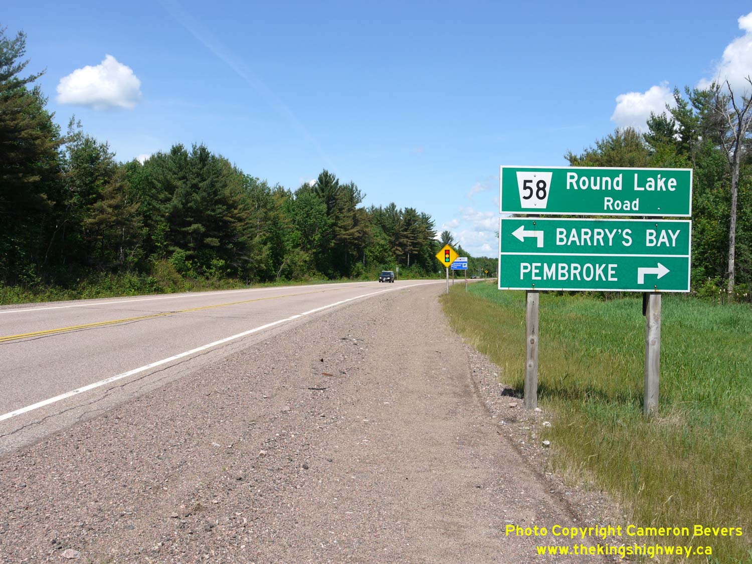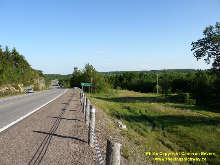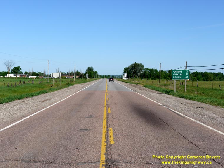 Left - Facing south along Round Lake Road (Hwy 62) from the Hwy 17 Junction. It is interesting to note that the distance guide sign at right lists Hwy 60 as a