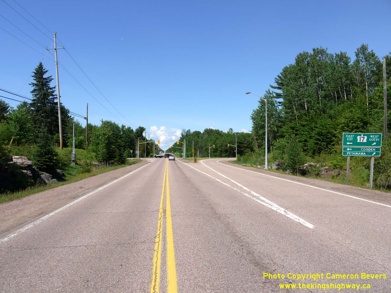 Left - Facing west along Hwy 17 towards Petawawa from the Round Lake Road (Hwy 62 & Hwy 148) Junction. See an