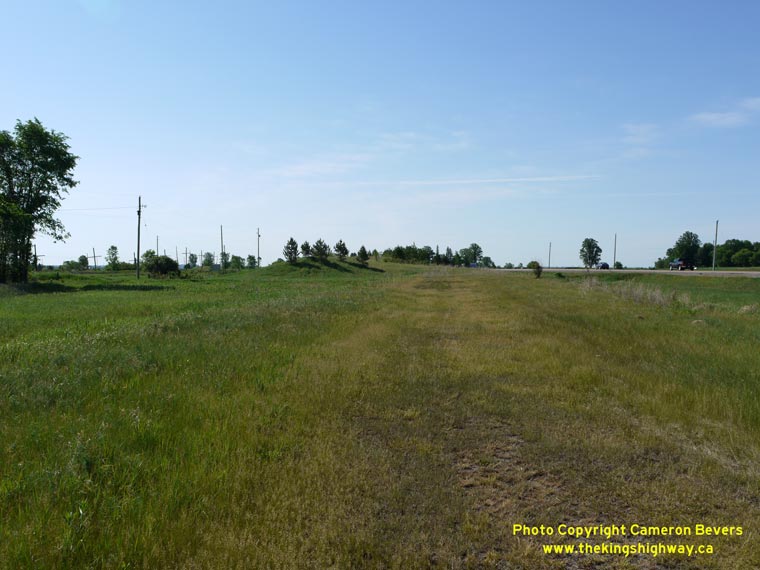 Left - Facing west along Hwy 17 at the Ottawa Valley Railway Crossing at Meath Hill. (Photograph taken on June 1, 2010 - © Cameron Bevers) Right - Facing east along Hwy 17 towards the Ottawa Valley Railway Crossing at Meath Hill, south of Pembroke. (Photograph taken on June 1, 2010 - © Cameron Bevers)