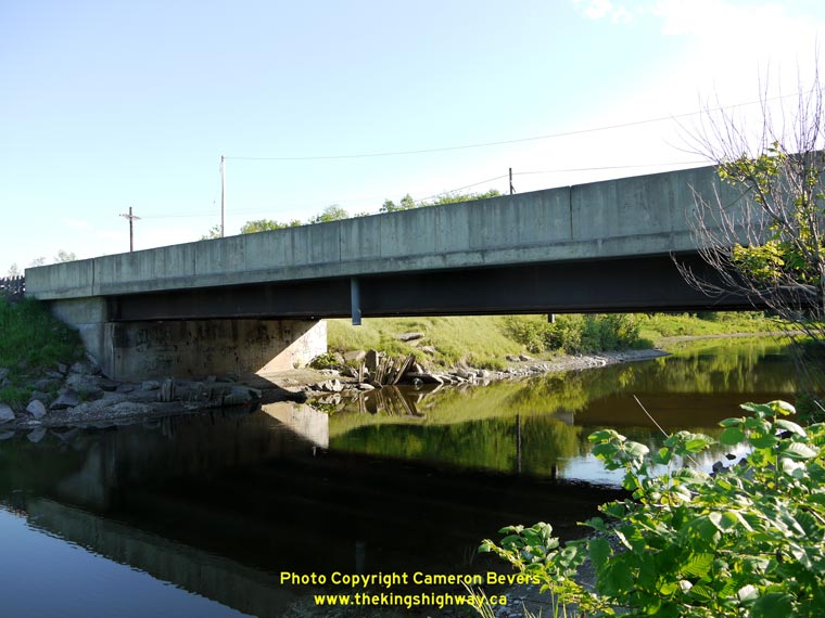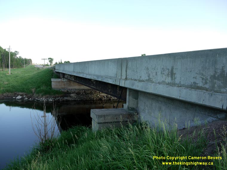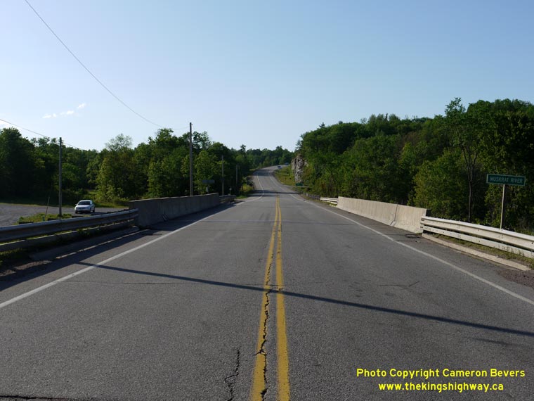 Left - Facing west along Hwy 17 at the Muskrat River Bridge at Meath Hill, south of Pembroke. (Photograph taken on June 1, 2010 - © Cameron Bevers) Right - Northern side of the Muskrat River Bridge on Hwy 17 at Meath Hill. Structure completed in 1970. (Photograph taken on June 1, 2010 - © Cameron Bevers)