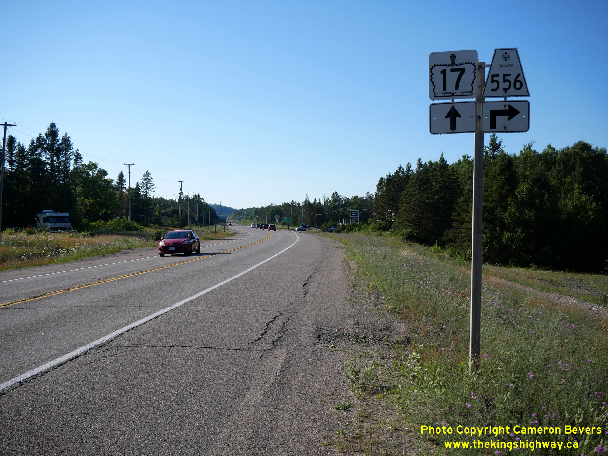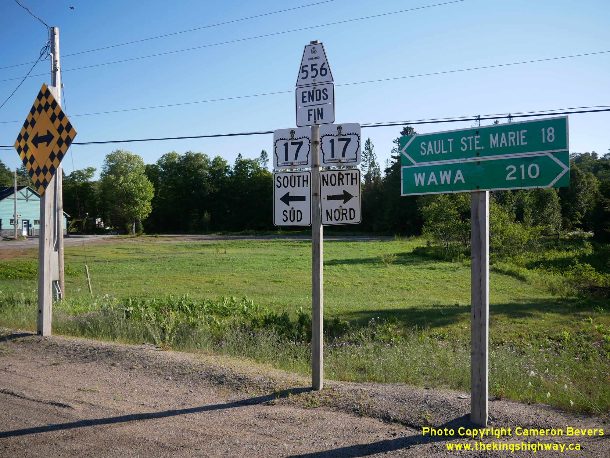 ![]() Left - Western terminus of Hwy 556 at the Hwy 17 Junction at Heyden. This is one of only three provincial highway junctions along Hwy 17 between Sault Ste.