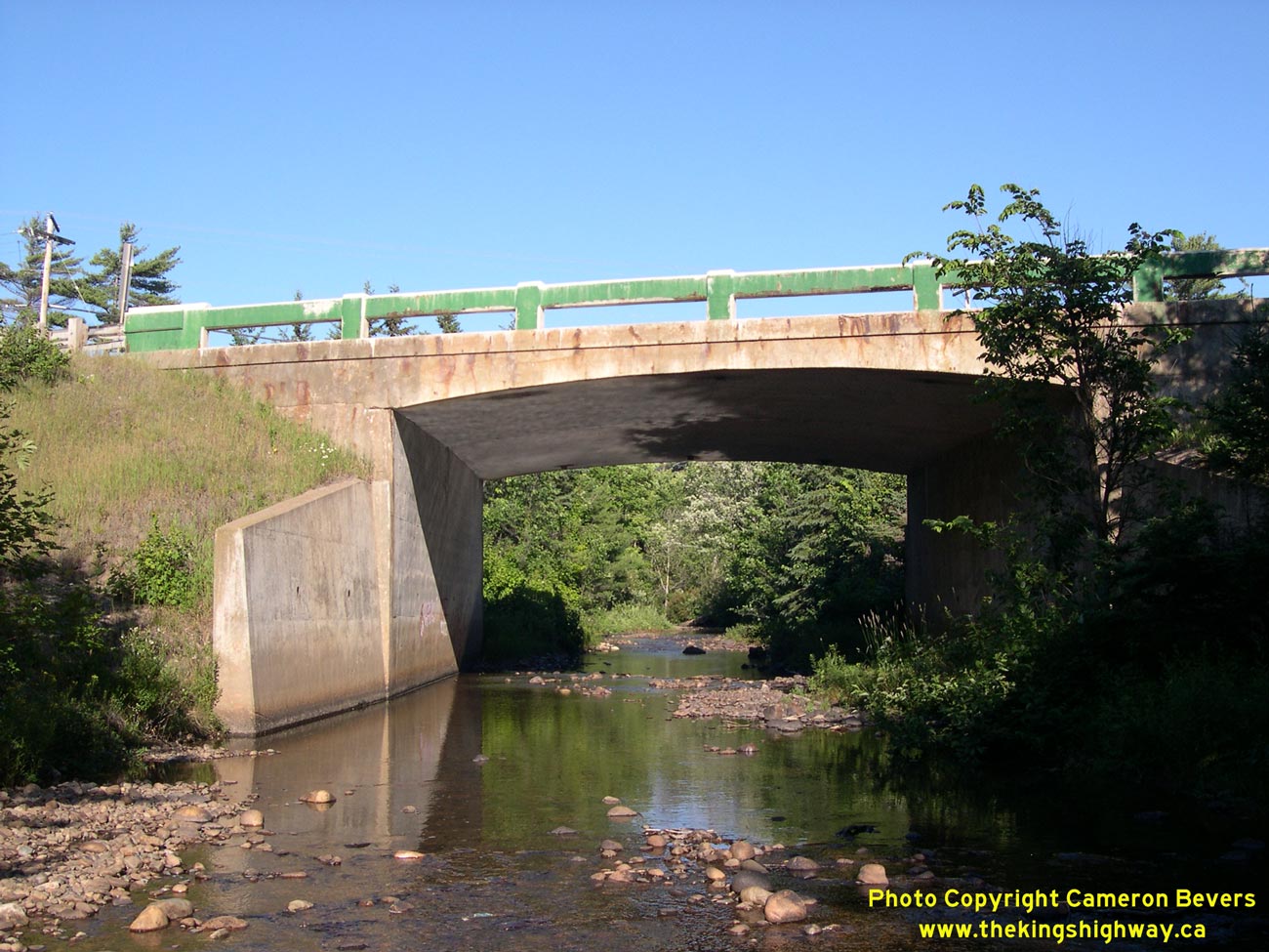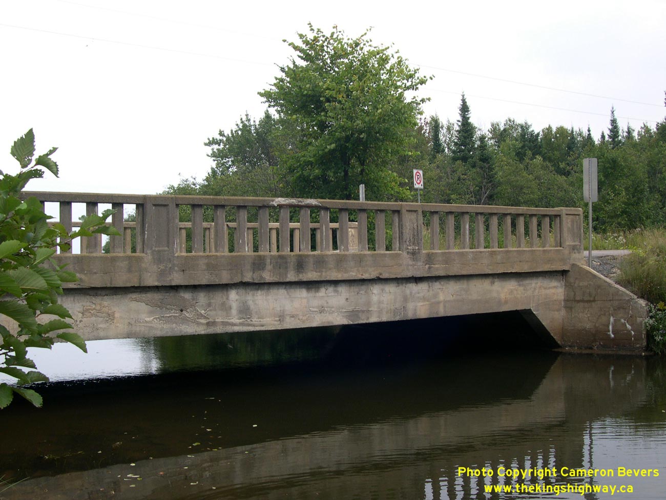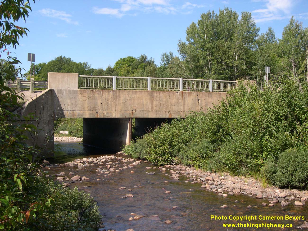 Left - Facing south along Old Hwy 17 (Havilland Shores Road) at the Stokely Creek Bridge north of Sault Ste. Marie. See an