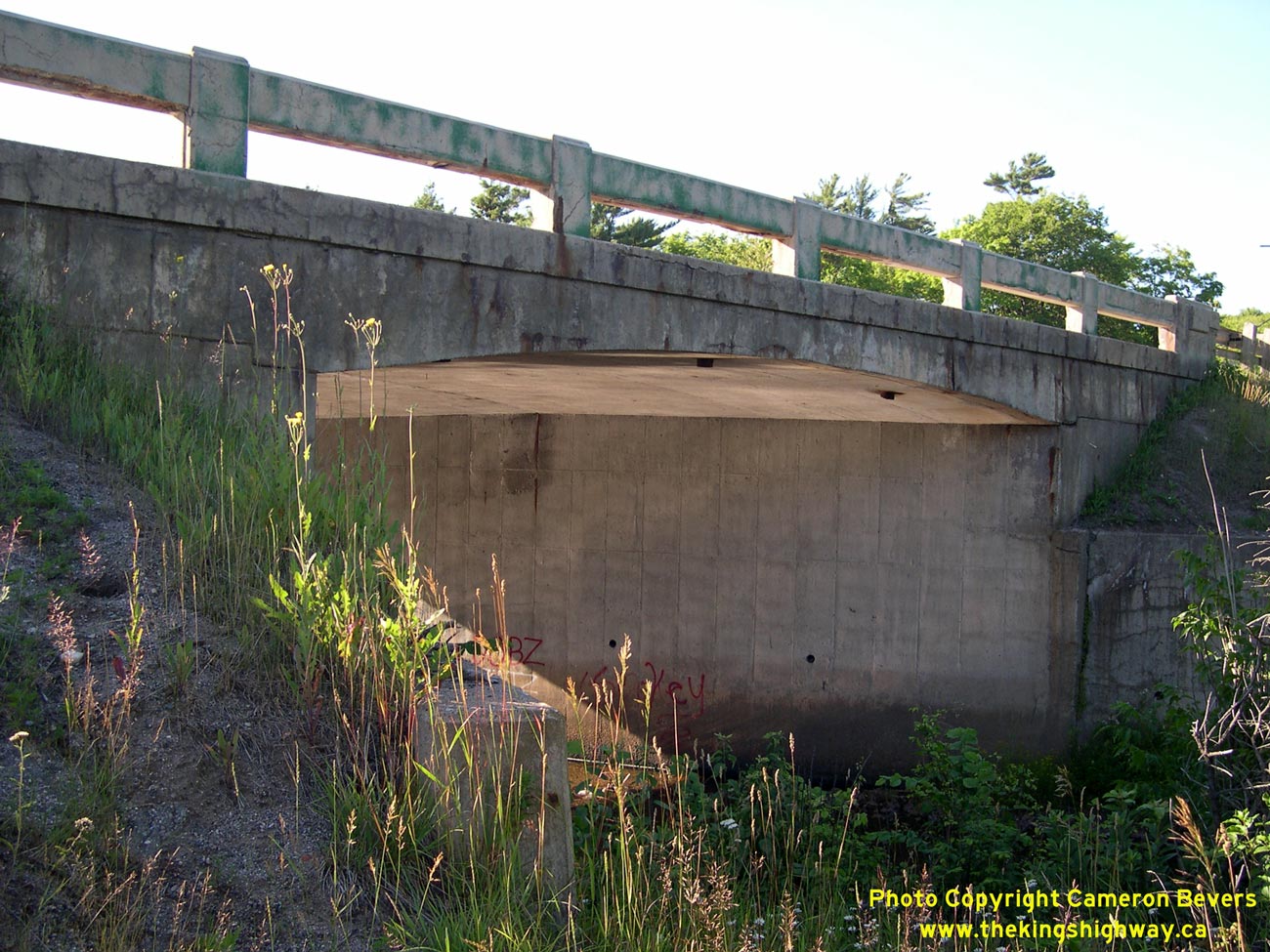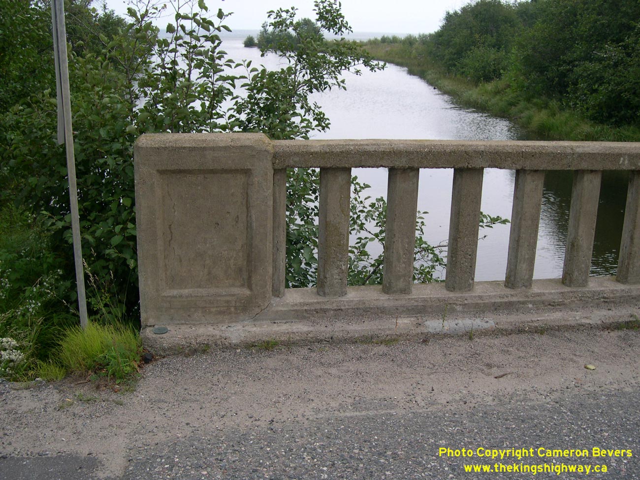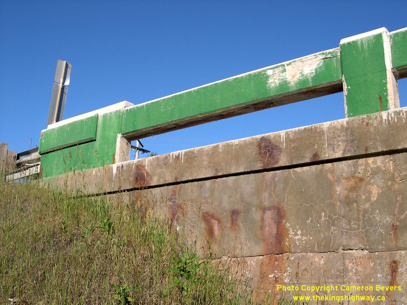 1960. See an Enlarged Photo Here. (Photograph taken on July 15, 2007 - © Cameron Bevers) Right - Eastern side of Root River Bridge #2 on Hwy 17 in Sault Ste. Marie. This bridge features the concrete bar-and-post handrail design, which was commonly used on provincial highway bridges built in the 1950s and early 1960s. See an Enlarged Photo Here. (Photograph taken on July 15, 2007 - © Cameron Bevers)