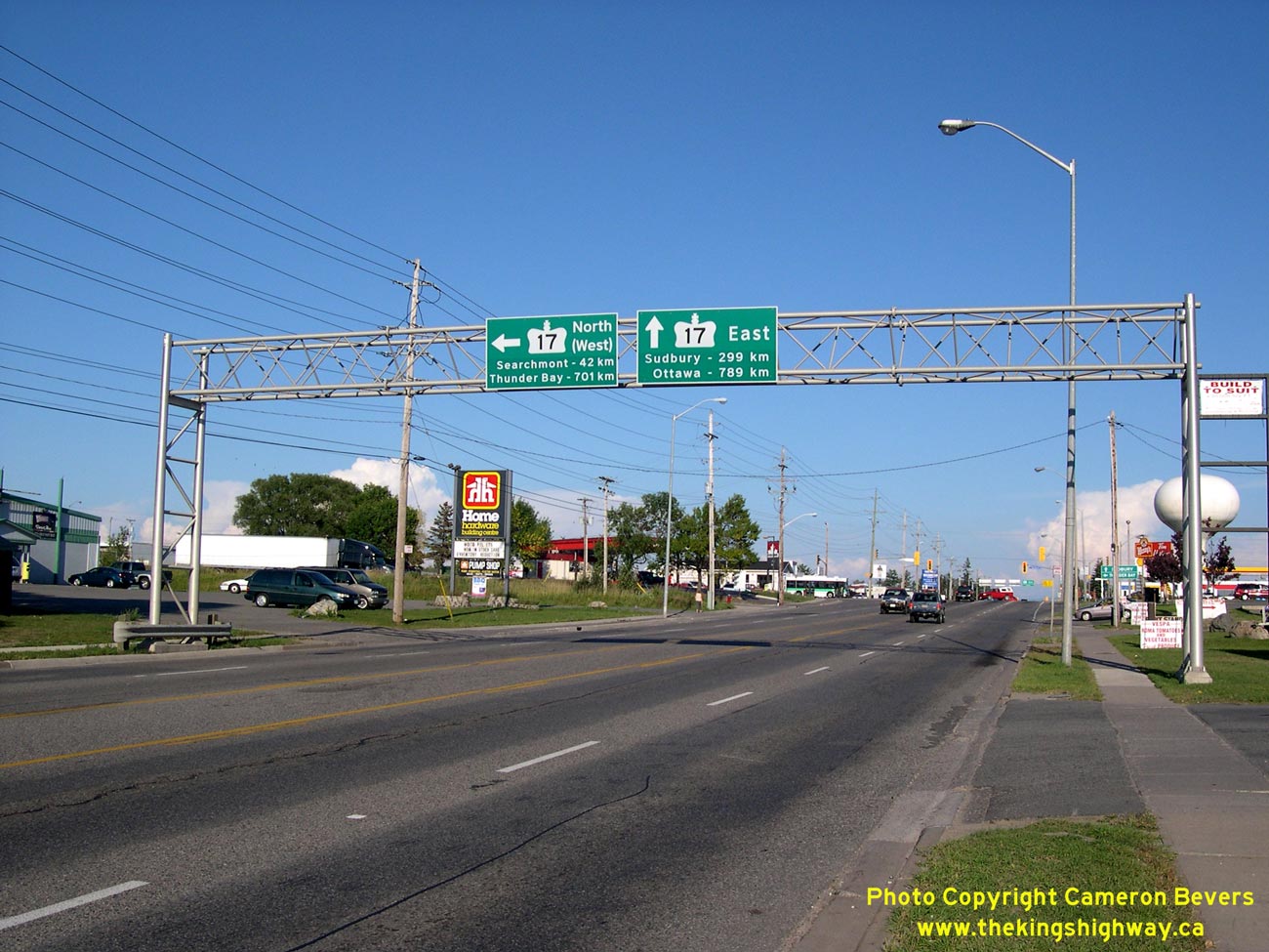 the municipality under a Municipal Connecting Link agreement with the province. Provincial jurisdiction over Hwy 17 begins at the northern city limits, which are