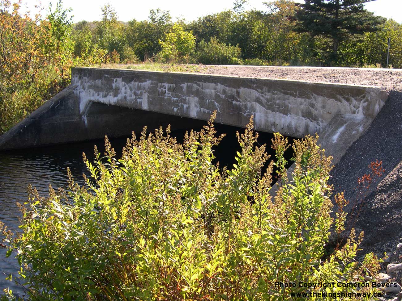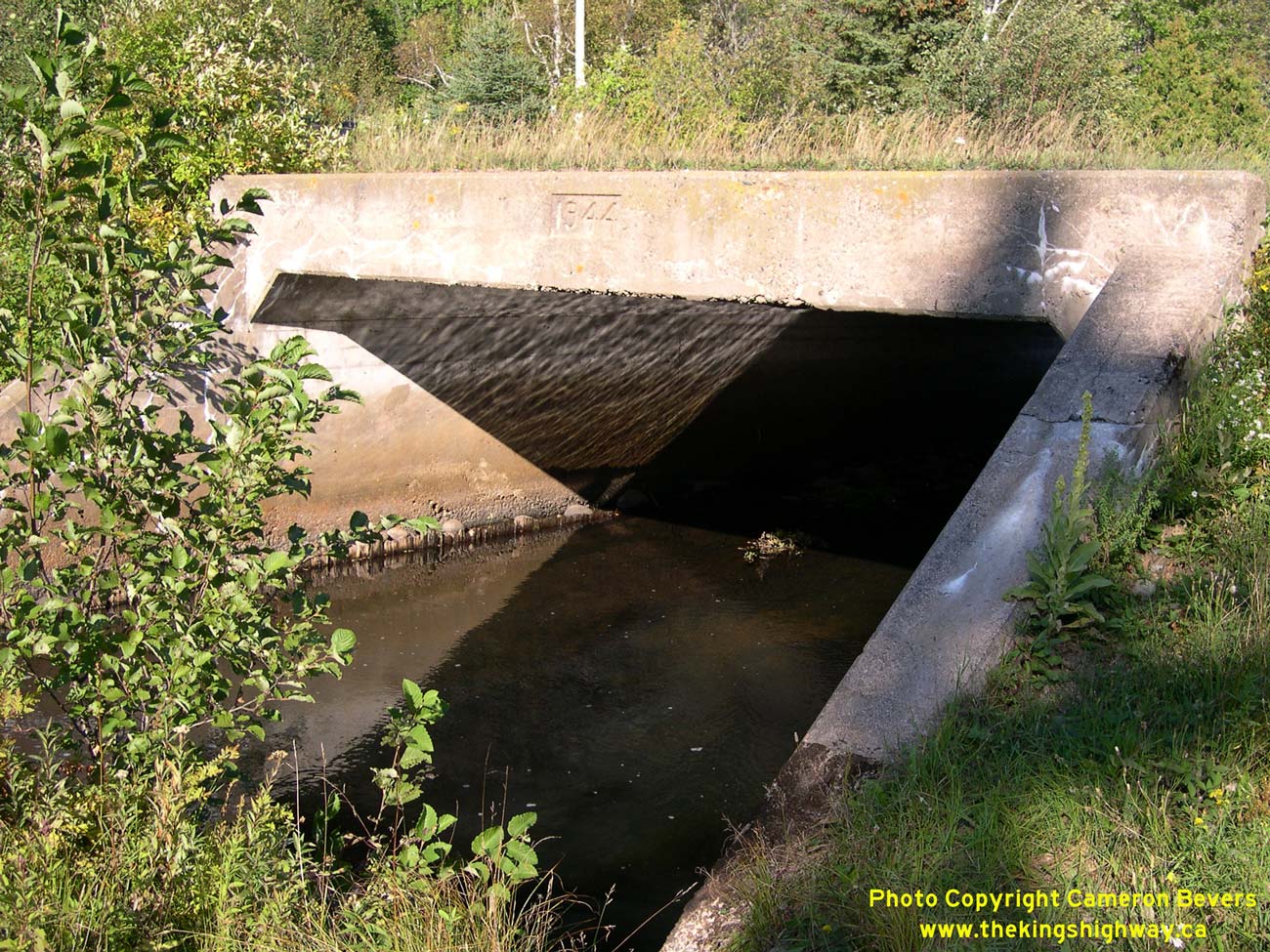 Enlarged Photo Here. (Photograph taken on September 5, 2006 - © Cameron Bevers) Right - Root River Culvert on Old Hwy 17 (MacIntyre Road) near Heyden. This single-span concrete structure was completed in 1944. This was one of two concrete culverts built across the Root River near Heyden under Contract #1944-07. See an Enlarged Photo Here. (Photograph taken on September 5, 2006 - © Cameron Bevers)