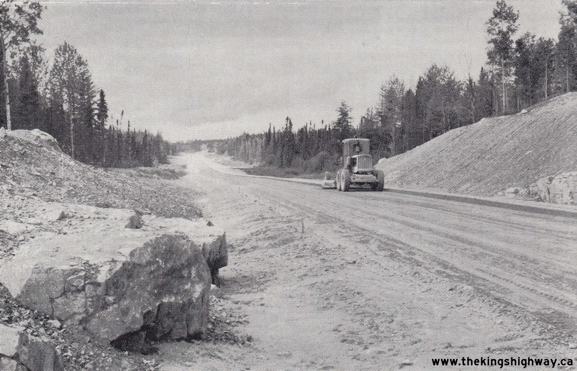 Above - Grading operations underway on Hwy 17 near Dryden (1955) (Photo courtesy of Ontario Ministry of Transportation - © King's Printer for Ontario, 1955) ![]()