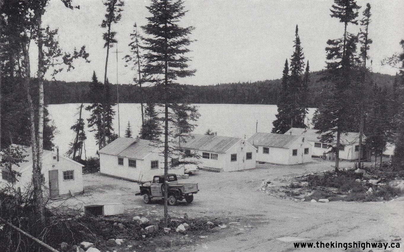 Enlarged Photo Here. Photo taken in 1958. (Photo courtesy of Ontario Ministry of Transportation - © King's Printer for Ontario, 1958) Right - Remote highway construction camp on Hwy 17 at Marion Lake, 15 miles south of White River. This temporary building complex was provided to house construction and engineering staff during construction of the Trans-Canada Highway between White River and Wawa. See an Enlarged Photo Here. Photo taken in 1958. (Photo courtesy of Ontario Ministry of Transportation - © King's Printer for Ontario, 1958) ![]()