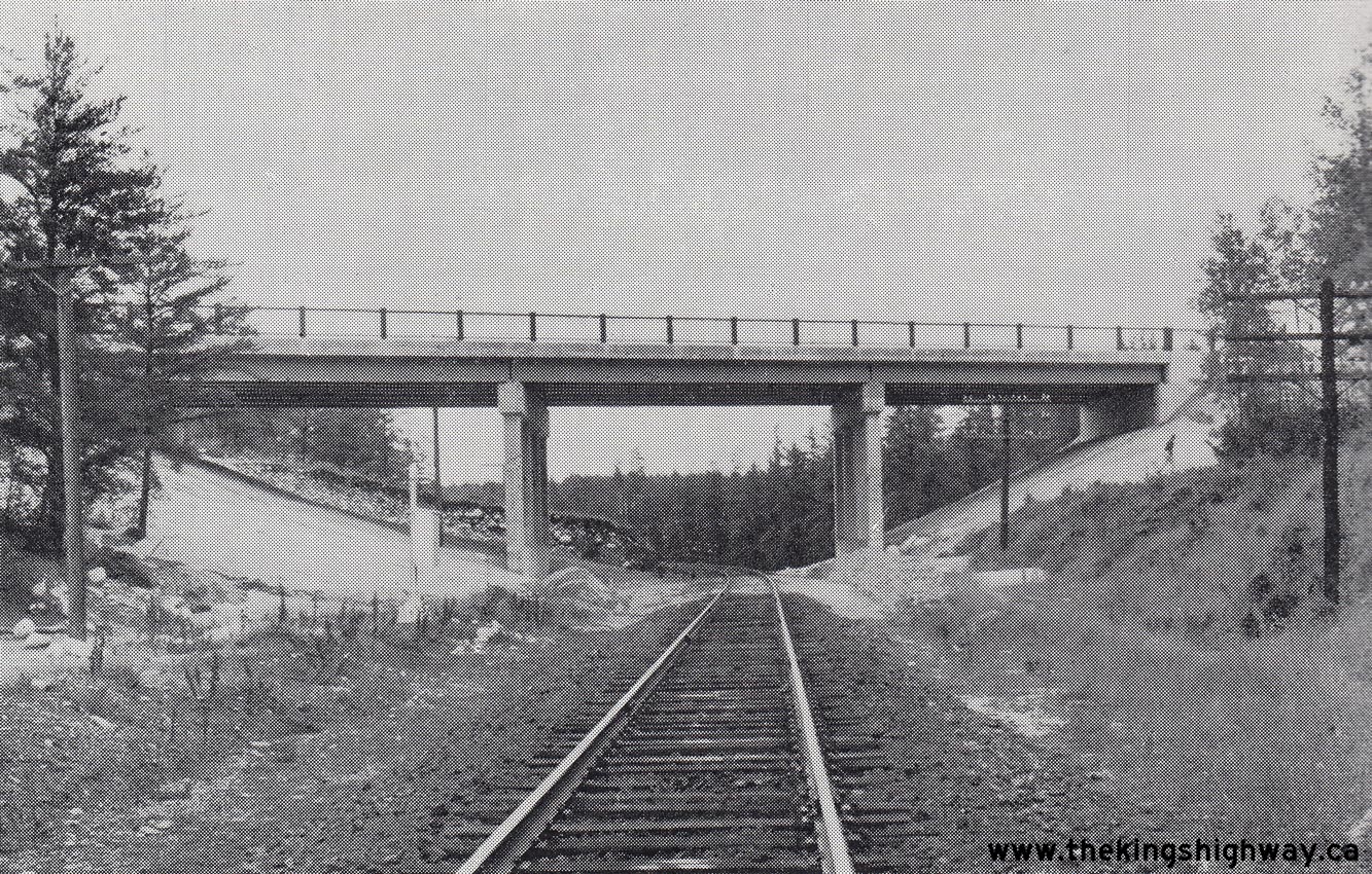 Above - Completed approach to the Nairn Railway Overhead on Hwy 17 between Sudbury and Espanola. Photo taken on October 12, 1956. (Photo courtesy of Ontario Ministry of Transportation - © King's Printer for Ontario, 1956) ![]()
