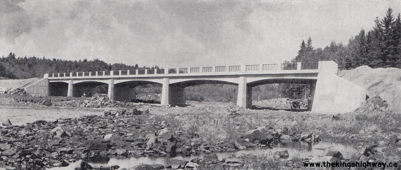 Above - Completed Spanish River Bridge on Hwy 17 between Espanola and Nairn Centre. Photo taken on October 11, 1956. (Photo courtesy of Ontario Ministry of Transportation - © King's Printer for Ontario, 1956) ![]()