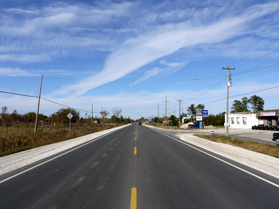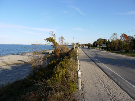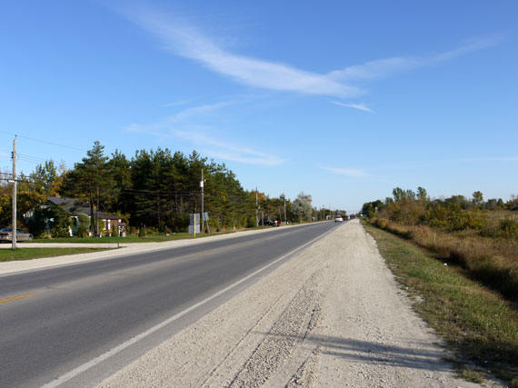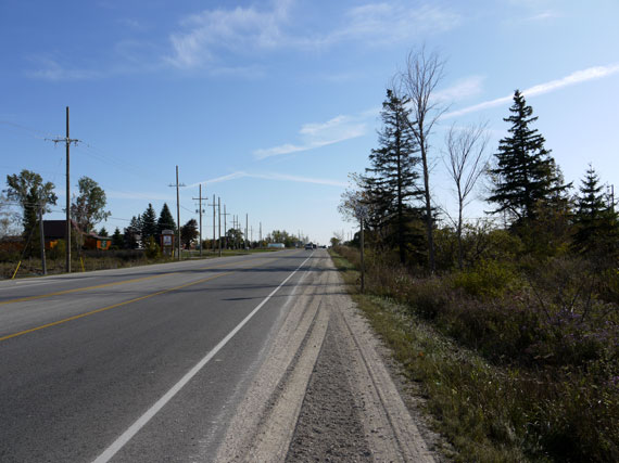 Enlarged Photo here. (Photograph taken on October 16, 2009 - © Cameron Bevers) Right - Facing west along Hwy 92 approaching the Hwy 26 Junction in Wasaga Beach. See an Enlarged Photo here. (Photograph taken on October 16, 2009 - © Cameron Bevers)