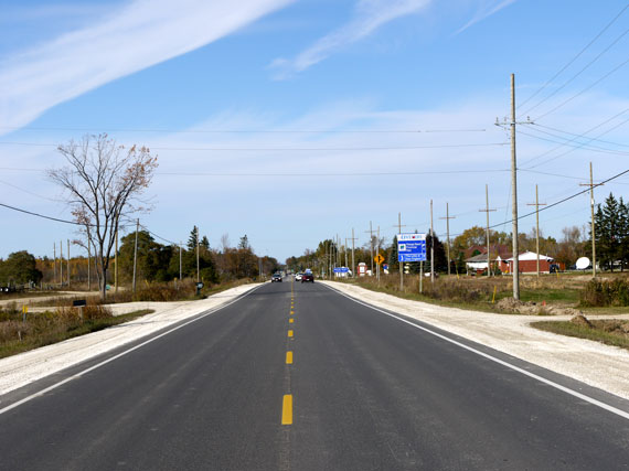Left - Facing west along Hwy 26 at the proposed tie-in with the Hwy 26 New Diversion south of Wasaga Beach. Hwy 26 New will be a four-lane divided