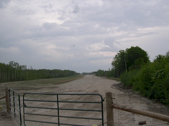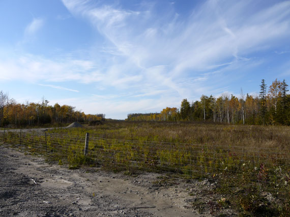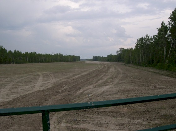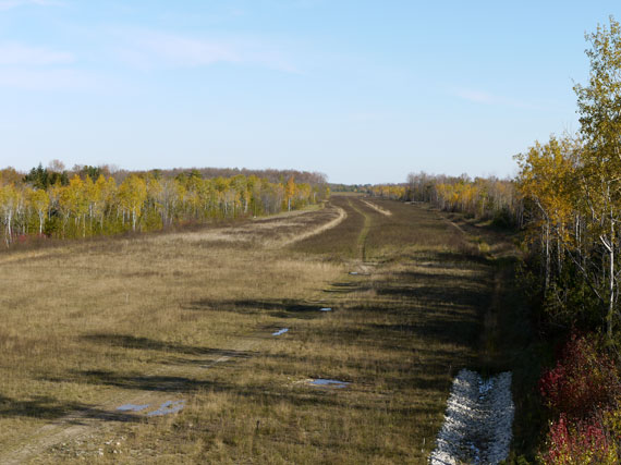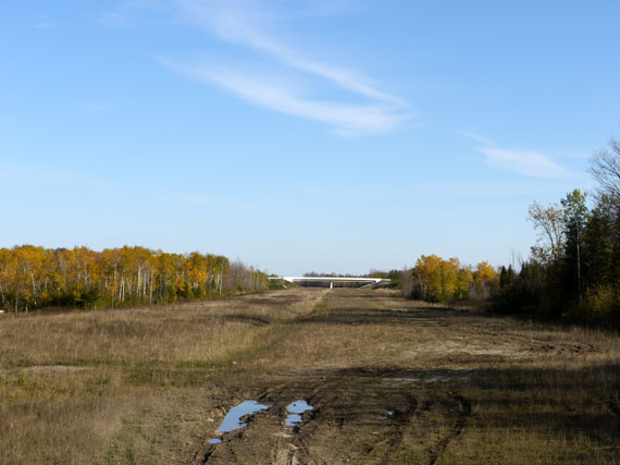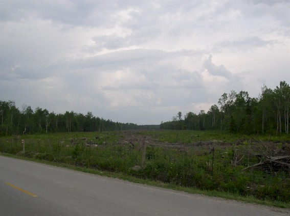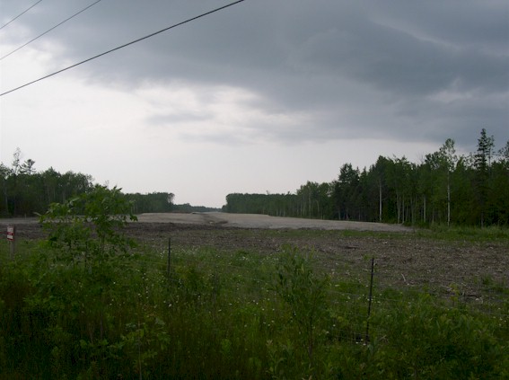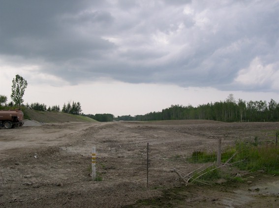Left - View of the cleared right-of-way for Hwy 26 New in 2009, facing east from Collingwood Airport Road. Since no granular base was laid for this