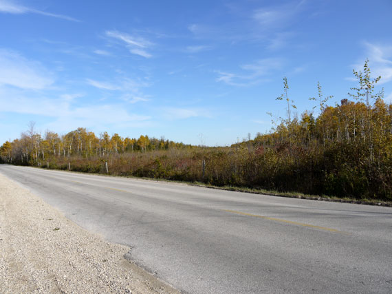 was done in preparation for the new four-lane highway. (Photograph taken on October 16, 2009 - © Cameron Bevers) Right - Facing west along Hwy 26 towards the proposed Hwy 26 Diversion between Stayner and Wasaga Beach. (Photograph taken on October 16, 2009 - © Cameron Bevers)