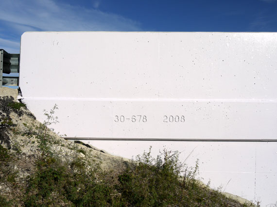 Left - Structure identification number and date stamp (2008) on the Fairgrounds Road Overpass. This bridge abutment has been painted with a sealant.
