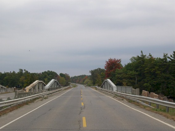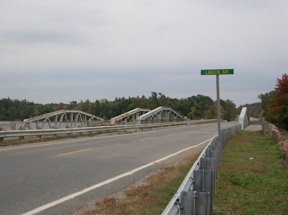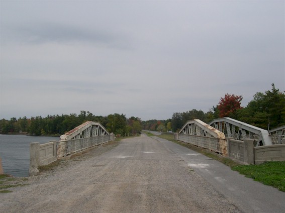 Right - View of twin Landon Bay Bridges, facing west towards Gananoque.