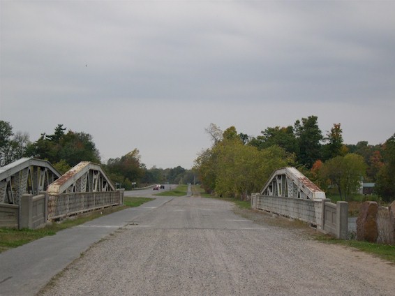Left - Twin steel through truss bridges over Jones Creek on the Thousand Islands Parkway (Old Hwy 2S & Hwy 401) west of Brockville. Both structures were