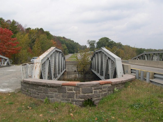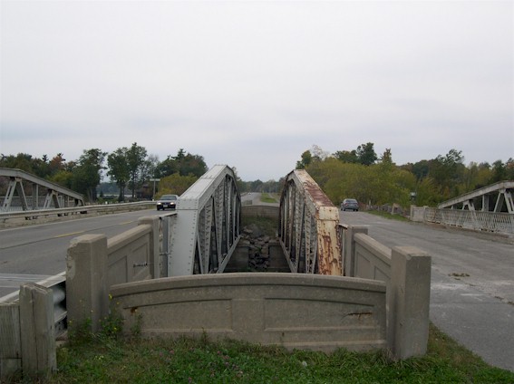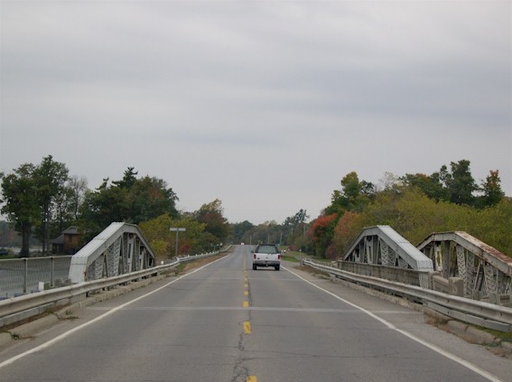 Right - Twin steel through truss bridges over Landon Bay on the Thousand Islands Parkway (Old Hwy 2S & Hwy 401) east of Gananoque. Both structures were