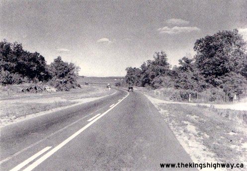 Left - Thousand Islands Parkway near Gananoque, facing east towards Brockville. The south roadway is now used for two-way traffic. The north roadway has been